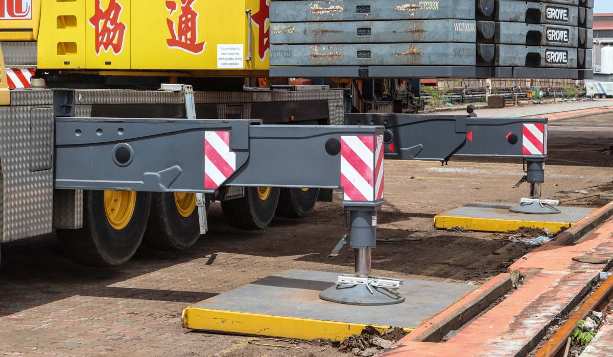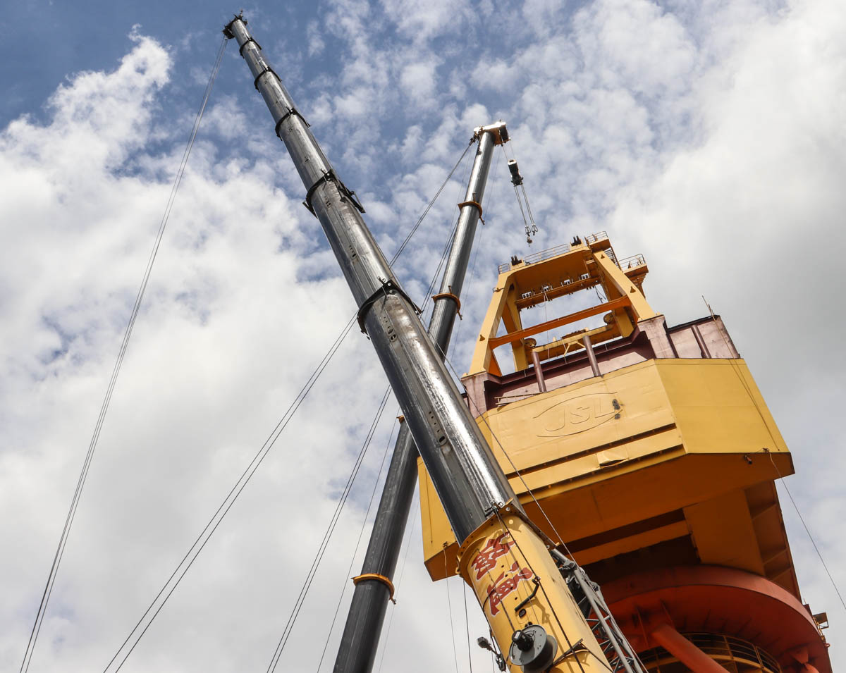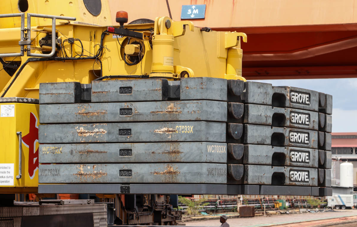 Hier wurde der Kran mit 54,5 Tonnen Ballast eingesetzt, dieser Ballast kann mit Hilfe von zwei 10-Tonnen-Blöcken und zwei 9-Tonnen-Blöcken auf 92,5 Tonnen erhöht werden. Der Ballast hat einen Drehkreis von 5,5 Metern. Der Kran ist mit einer 9,5-Tonnen-Hubwinde ausgestattet.