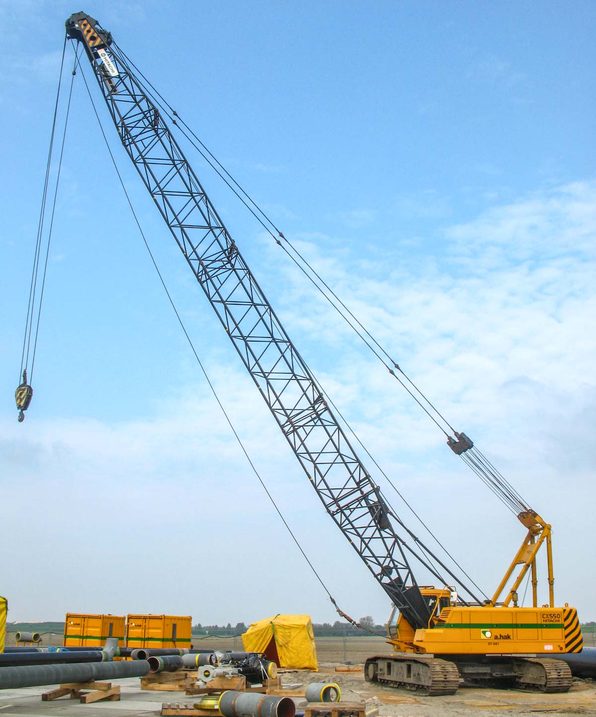 Dieser schöne Hitachi CX550 ist von A.Hak aus Tricht (NL) und wurde bei einem Einsatz in Opperdoes (NL) verwendet. Es handelt sich um einen 55-Tonnen-Raupenkran.
