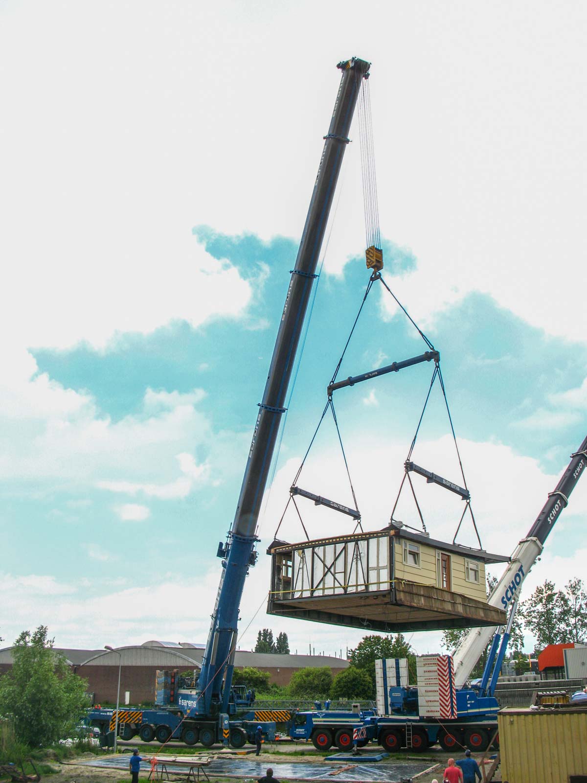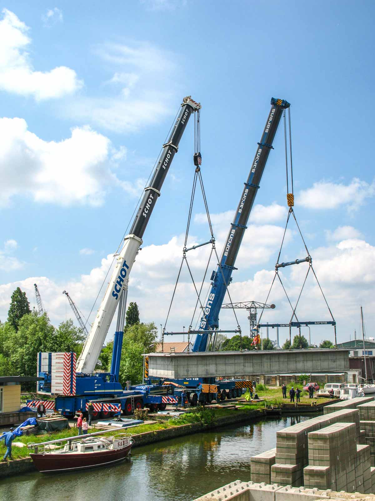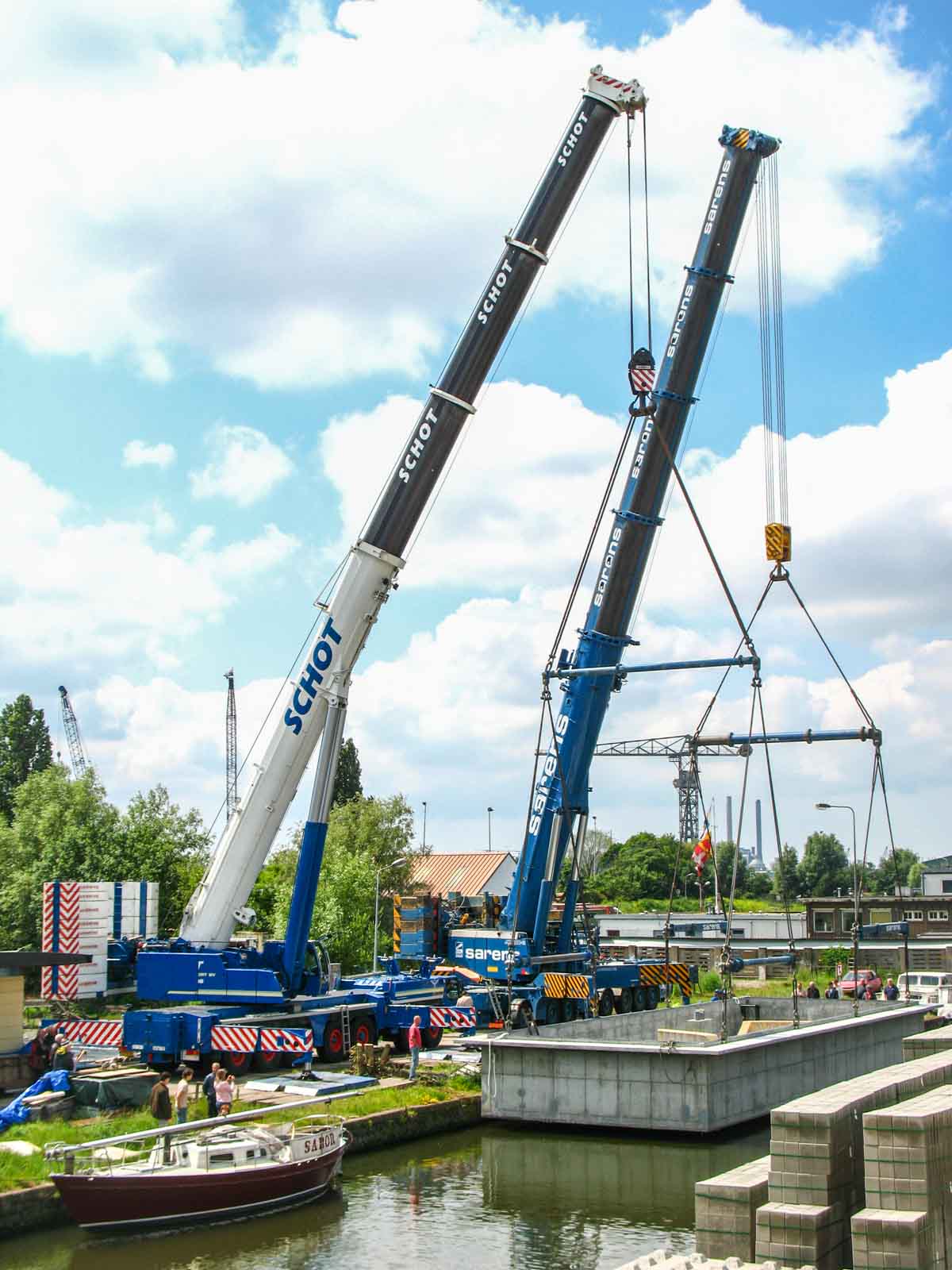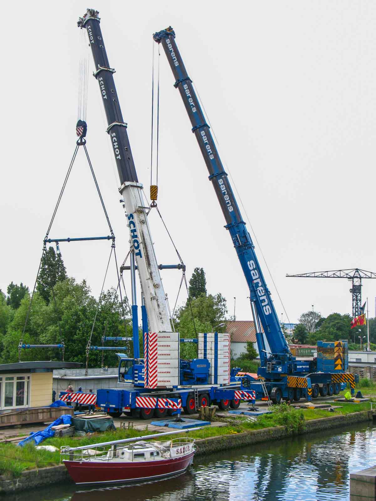 Schot setzte ihren (damals) größten Kran ein; den Liebherr LTM 1400-7.1. Hier aufgebaut mit der maximalen Ballastierung von 140 Tonnen.