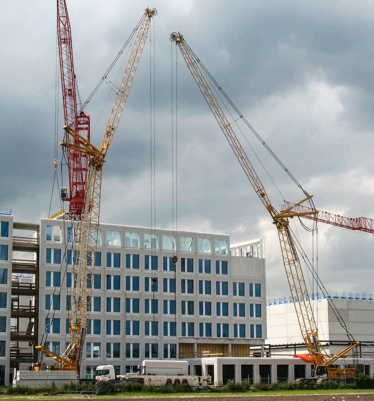 Im Jahr 2009 wurden das neue Hauptgebäude und Studio von Endemol in Amsterdam (NL) mit vorgefertigten Betonelementen errichtet. Einige Elemente waren zu schwer, um mit einem einzelnen Kran montiert zu werden, daher wurde für die Montage eines Eckelements ein Tandemhub gewählt.