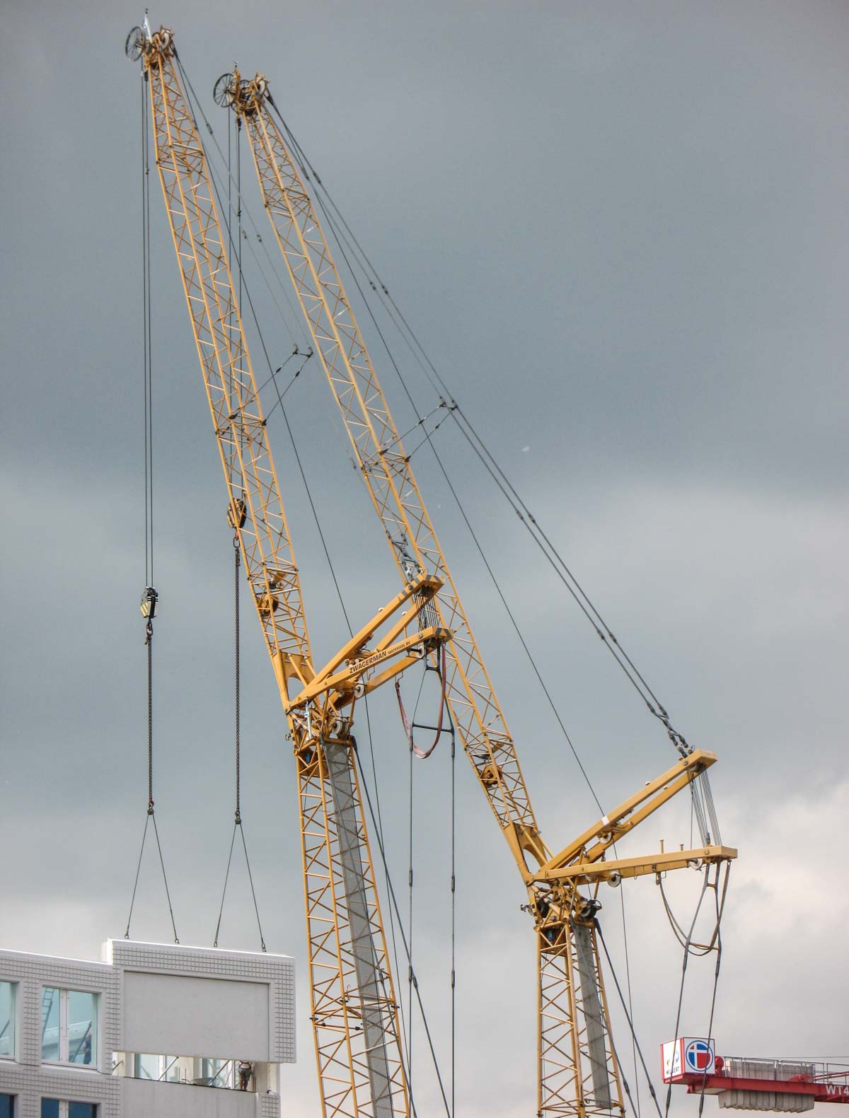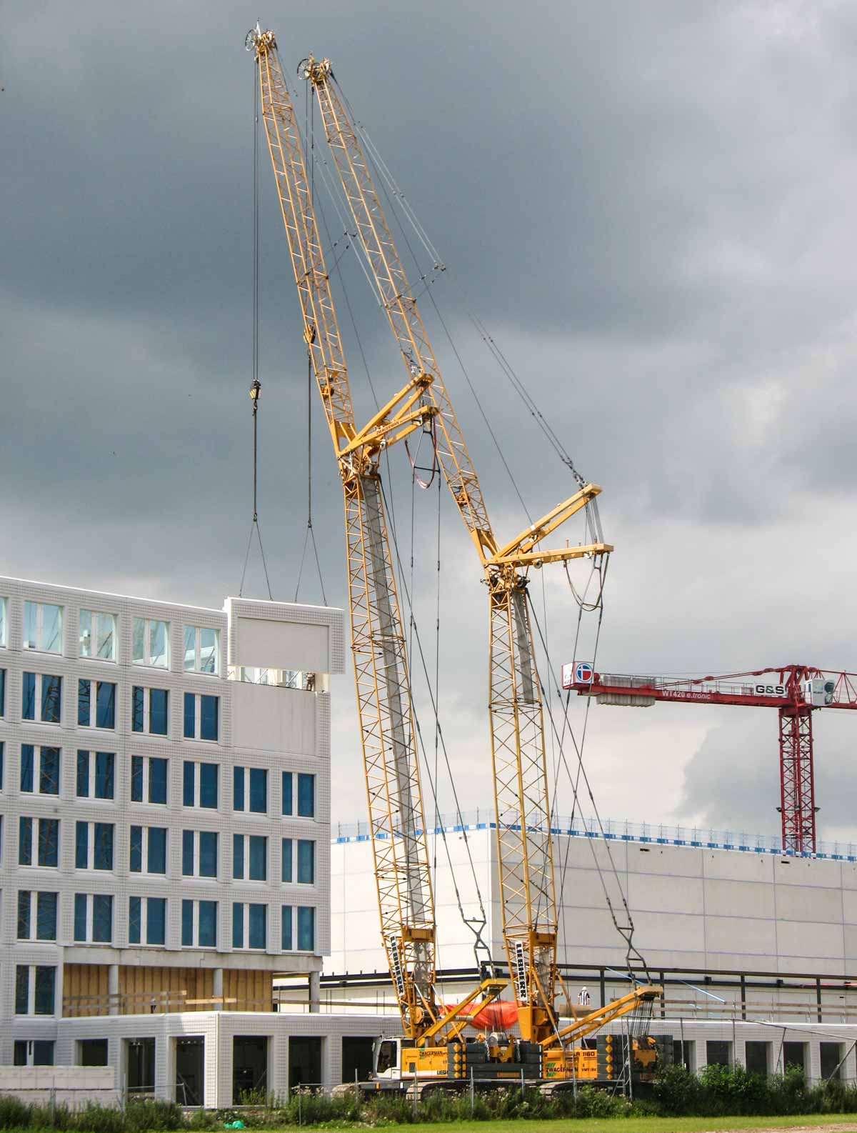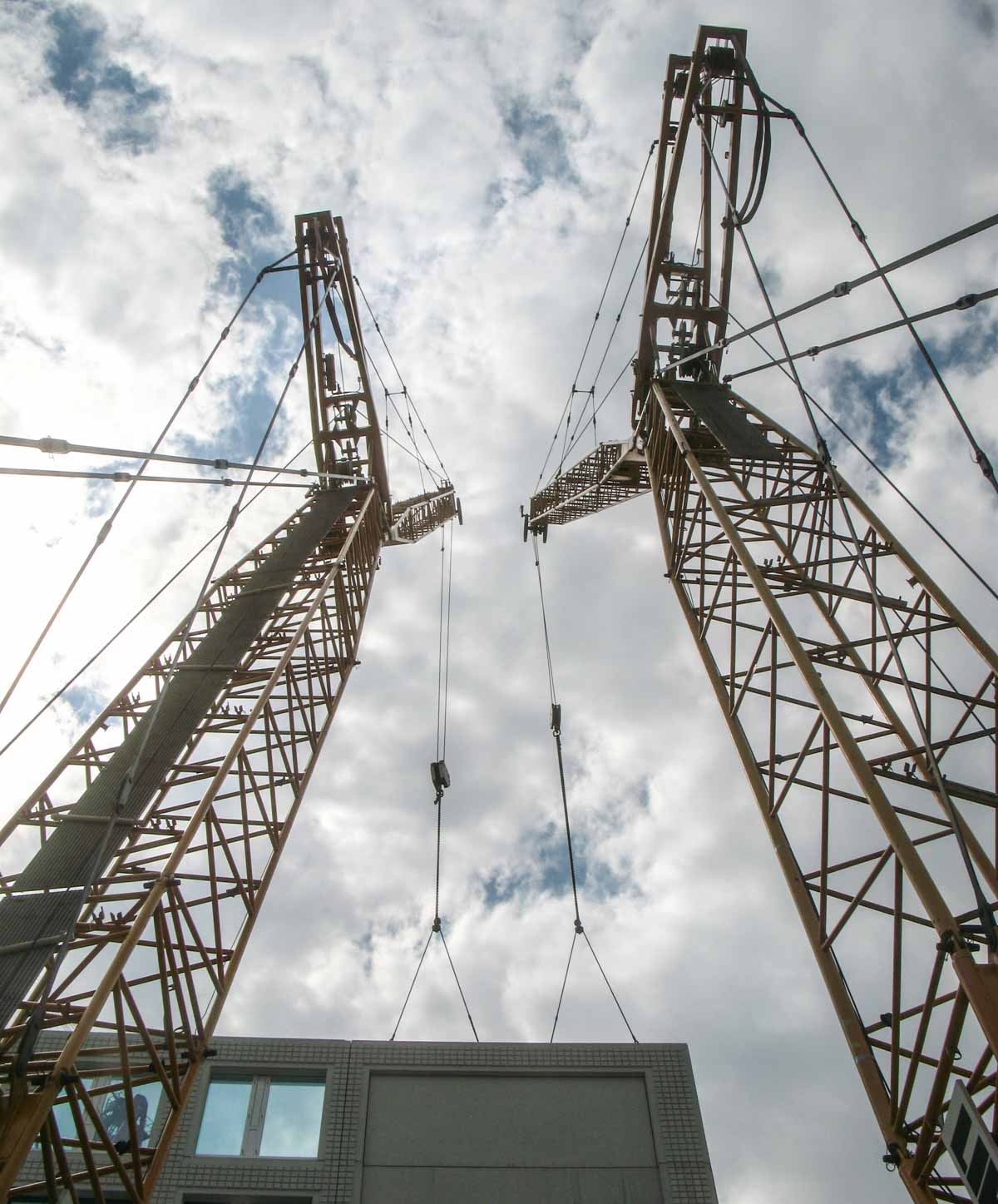 Jeder Kran hob hier etwa 12,5 Tonnen.