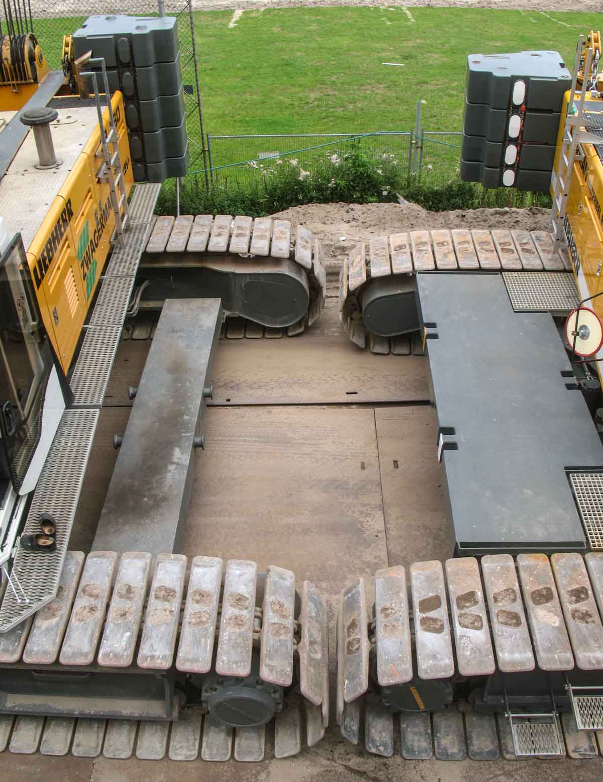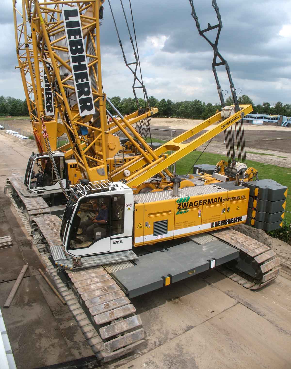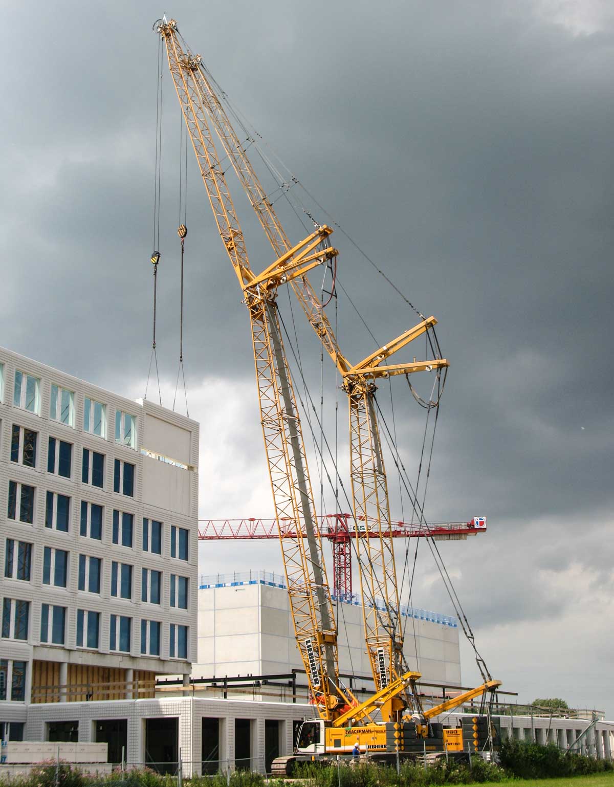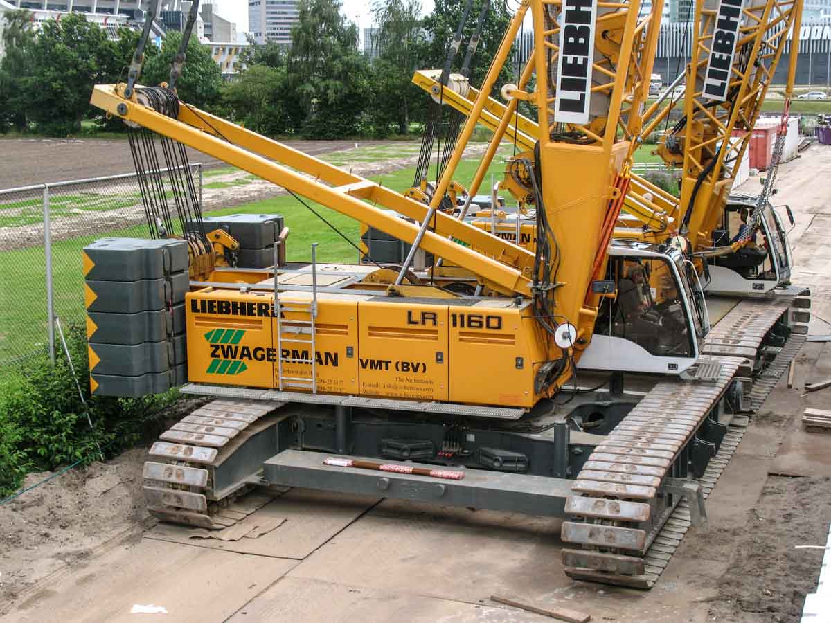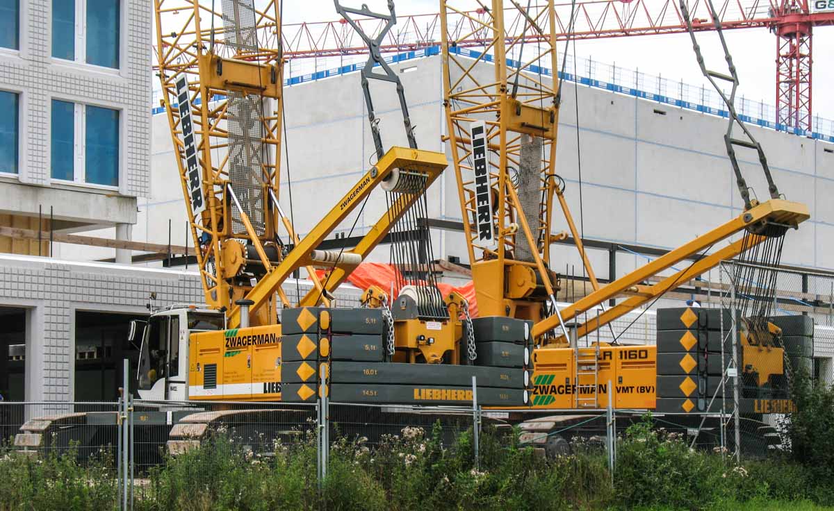 Die für diese Aufgabe eingesetzten Krane waren der Liebherr LR 1130 und der Liebherr LR 1160, beide von Zwagerman VMT aus Nederhorst den Berg (NL). Beide Krane wurden auf dieser Baustelle auf unterschiedlichen Standorte eingesetzt, jedoch für diesen Hub neben einander positioniert.