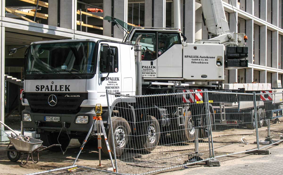 Dieser schöne Liebherr LTF 1045-4.1 von Spallek aus Ibbenbüren (DE) kam für einen Einsatz zur Montage von Fertigbetonelementen bis nach Amsterdam (NL). Es handelt sich um einen 45-Tonnen-Kran, der auf einem vierachsigen Lkw-Fahrgestell montiert ist.