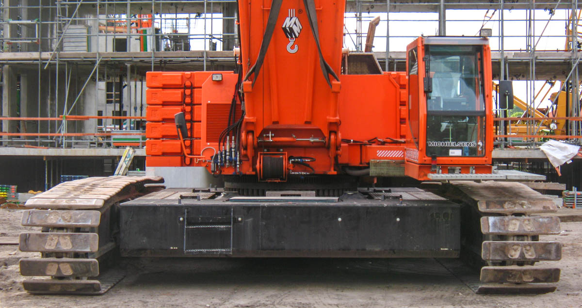 Dieser Sennebogen 5500 von Michielsens aus De Meern (NL) wurde auf einer großen Baustelle in Zaandam (NL) eingesetzt. Es handelt sich um einen 180-Tonnen-Raupenkran.