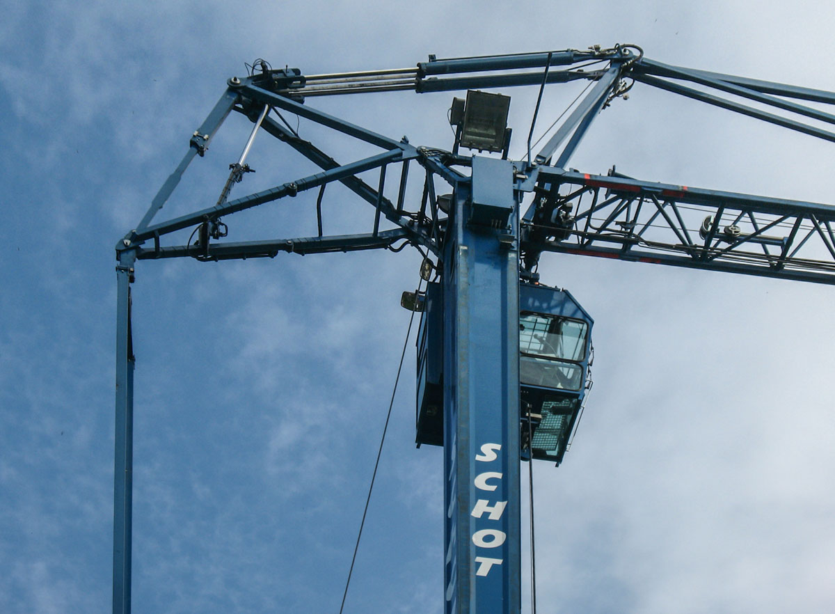 Der Turm schiebt bis auf eine horizontale Hakenhöhe von 26,5 Metern aus. Der Kran kann sowohl aus der Kabine als auch per Fernsteuerung bedient werden.