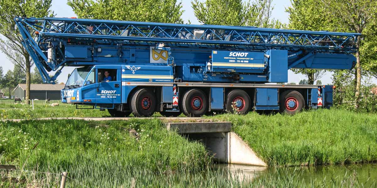 In Transportstellung ist der Kran 15,98 Meter lang, 2,75 Meter breit und 4 Meter hoch. Das Transportgewicht beträgt 48 Tonnen. Dank an den Maschinisten für das Positionieren des Krans für das Foto!