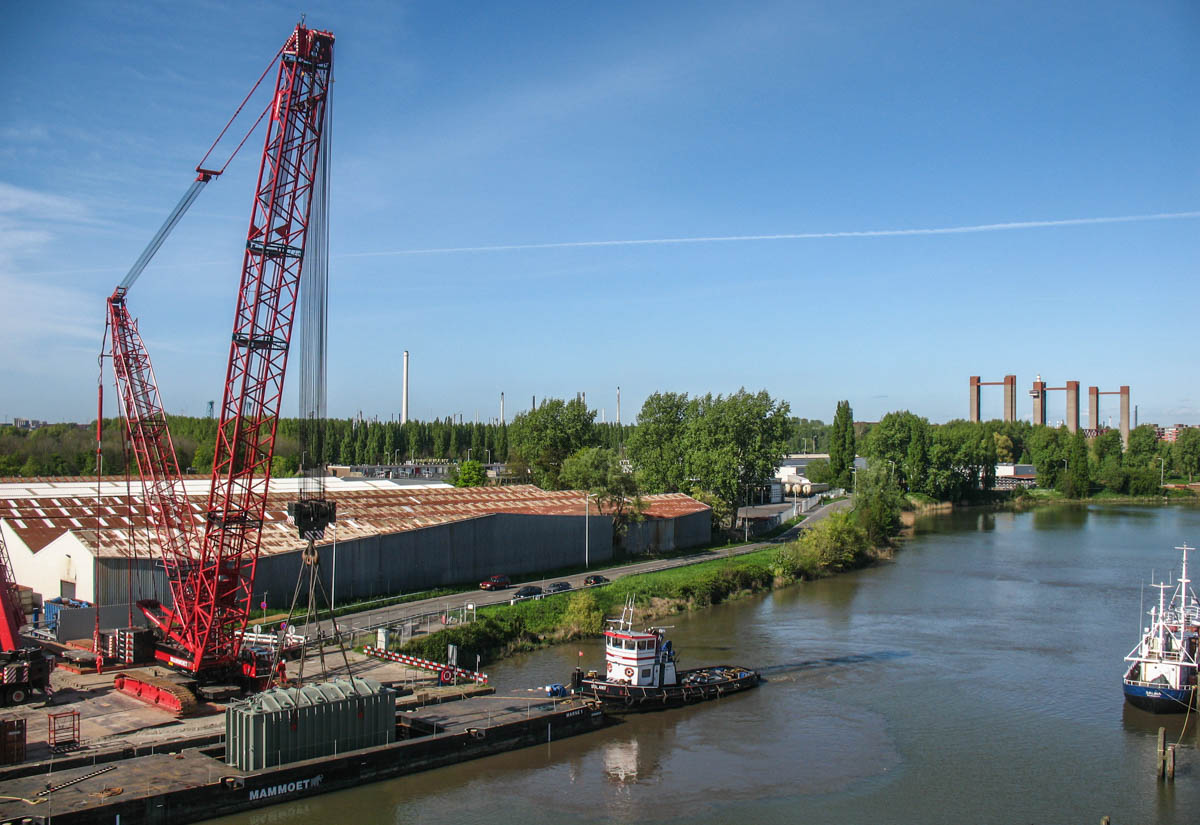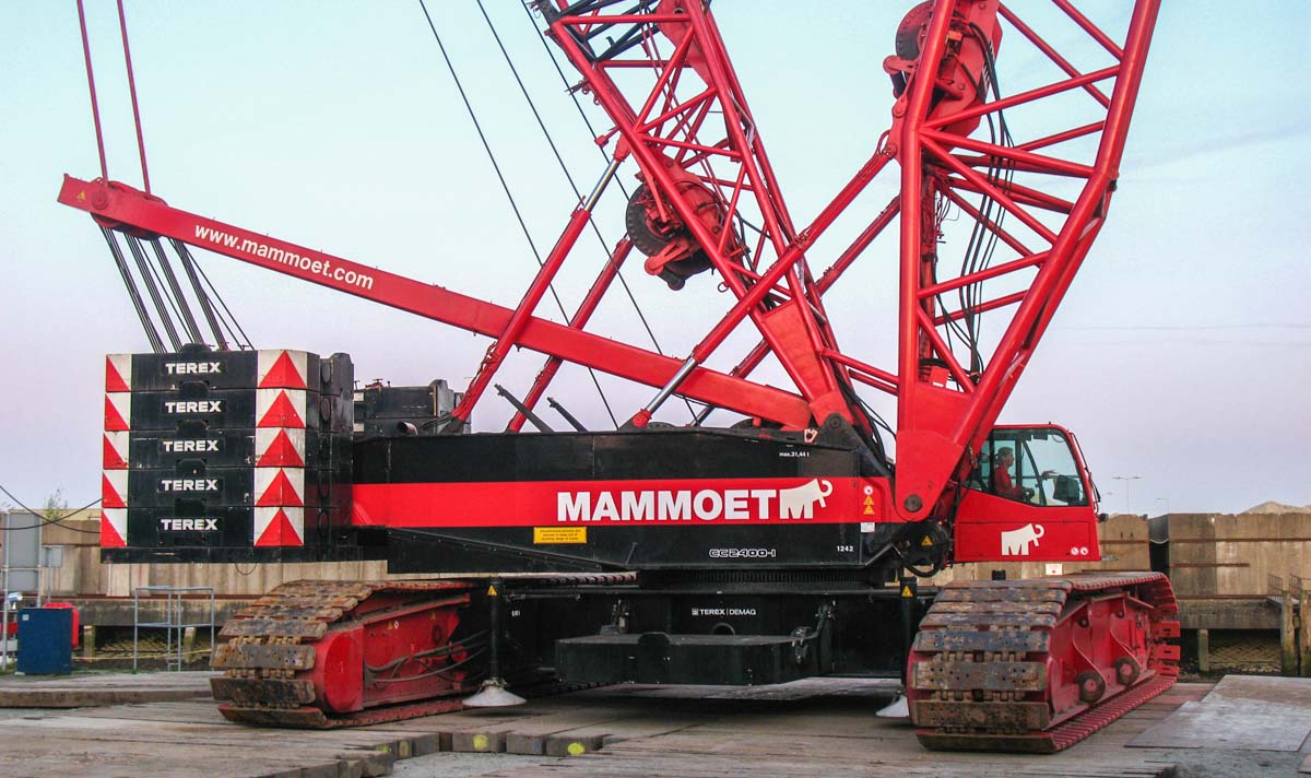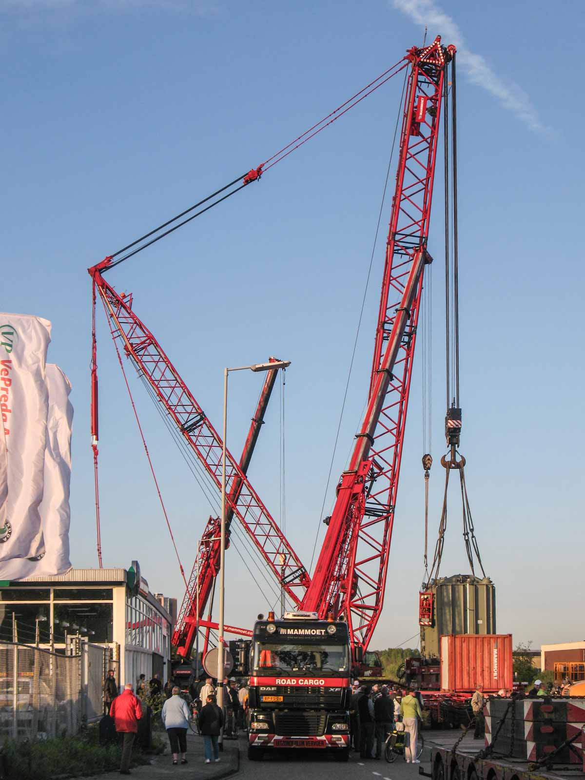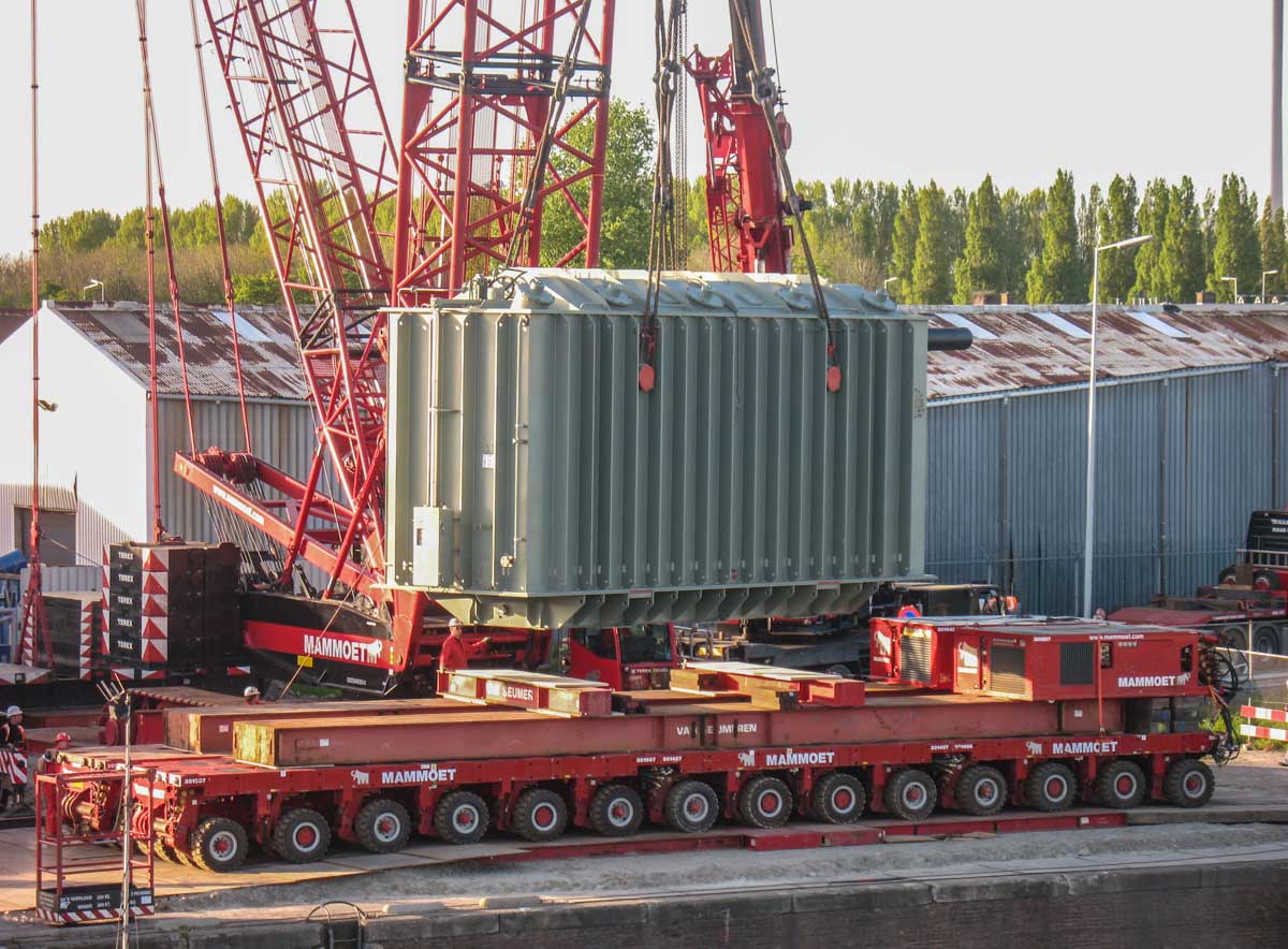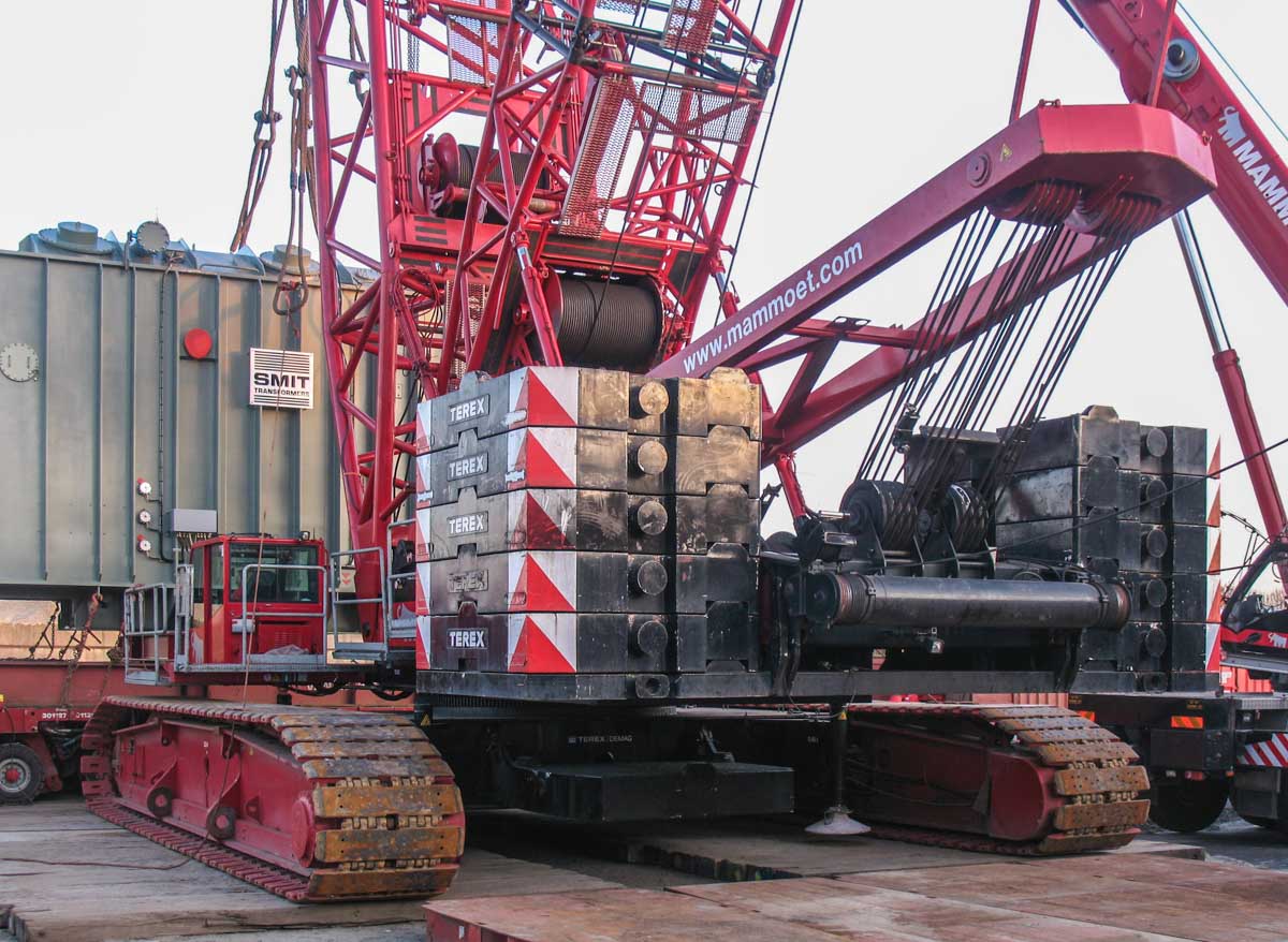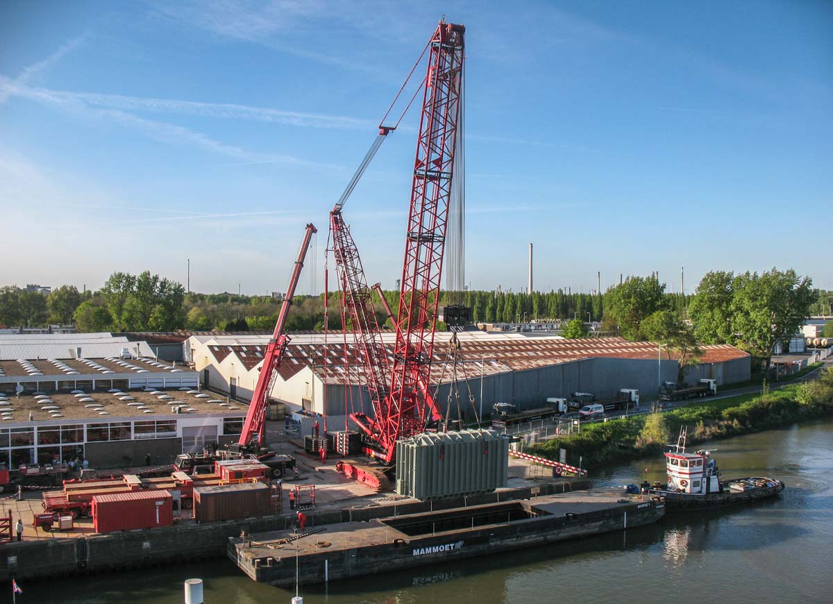 Im Frühjahr 2009 setzte Mammoet aus Schiedam (NL) diesen beeindruckenden Terex CC 2400-1 ein, um einen schweren Transformator aus einem Ponton zu heben. Der Terex CC 2400-1 ist ein 400-Tonnen-Raupenkran.