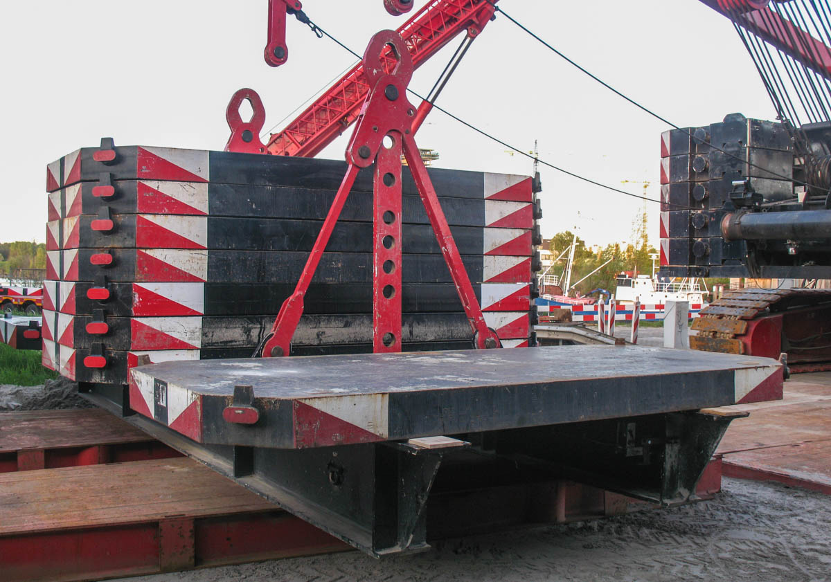 Der maximale Superliftballast wiegt 240 Tonnen, die Tray selbst wiegt 10 Tonnen. Mammoet verwendet modulare Ballastplatten mit jeweils einem Gewicht von 12 Tonnen. Hier beträgt der Superliftballast 118 Tonnen, das war erforderlich, als der Kran mit dem Transformator bei kurzer Ausladung langsam nach hinten fuhr.