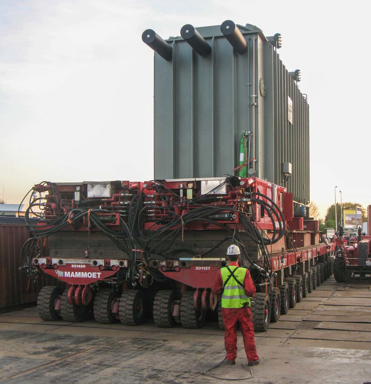 Insgesamt werden 28 Achslinien SPMT verwendet, um den Transformator anschließend zu transportieren.