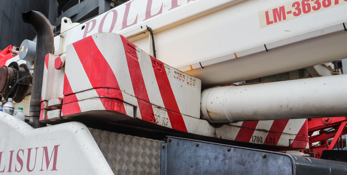Der volle Ballast des Krans wiegt 11,6 Tonnen und hat einen Drehkreis von 3,5 Metern. Der Kran ist mit einer 5,5-Tonnen-Hubwinde ausgeführt.