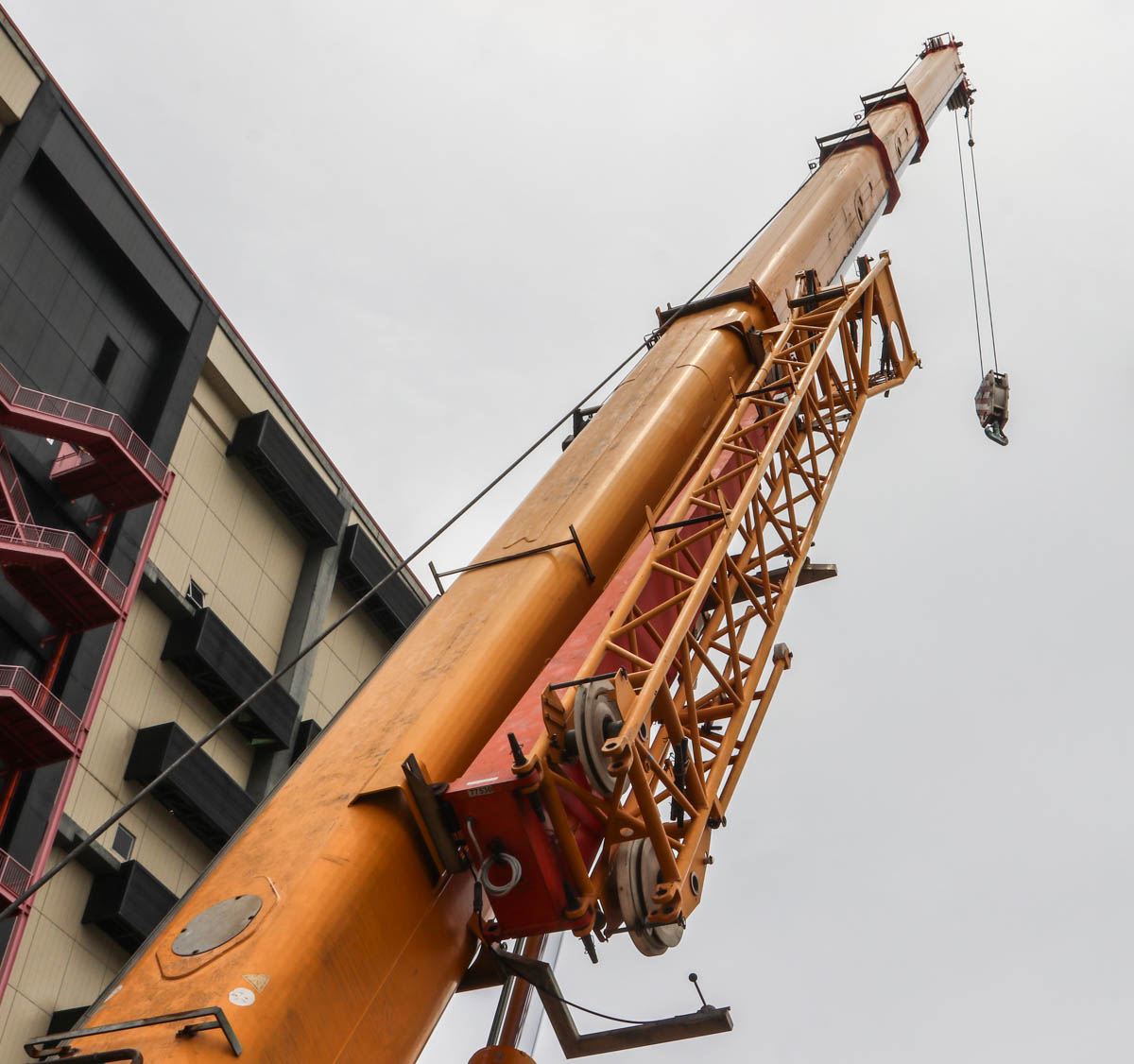 Der fünfteilig ausgeführte Hauptausleger hat eine Basislänge von 12,5 Metern und wird vierfach bis zu einer maximalen Länge von 51 Metern ausgeschoben. Hier ist der Hauptausleger auf eine Länge von 33,7 Metern ausgefahren. Optional kann der Hauptausleger mit einer 9,2 bis 17 Meter langen Klappspitze verlängert werden.