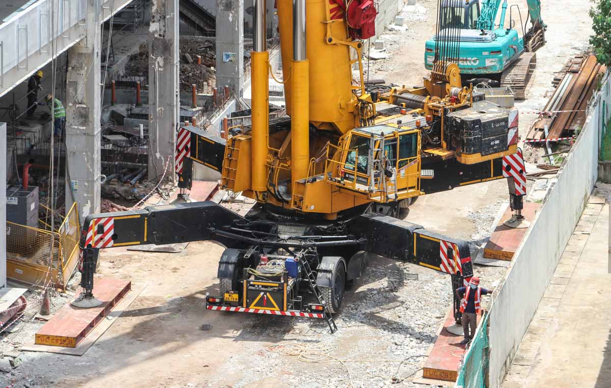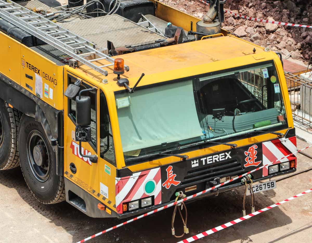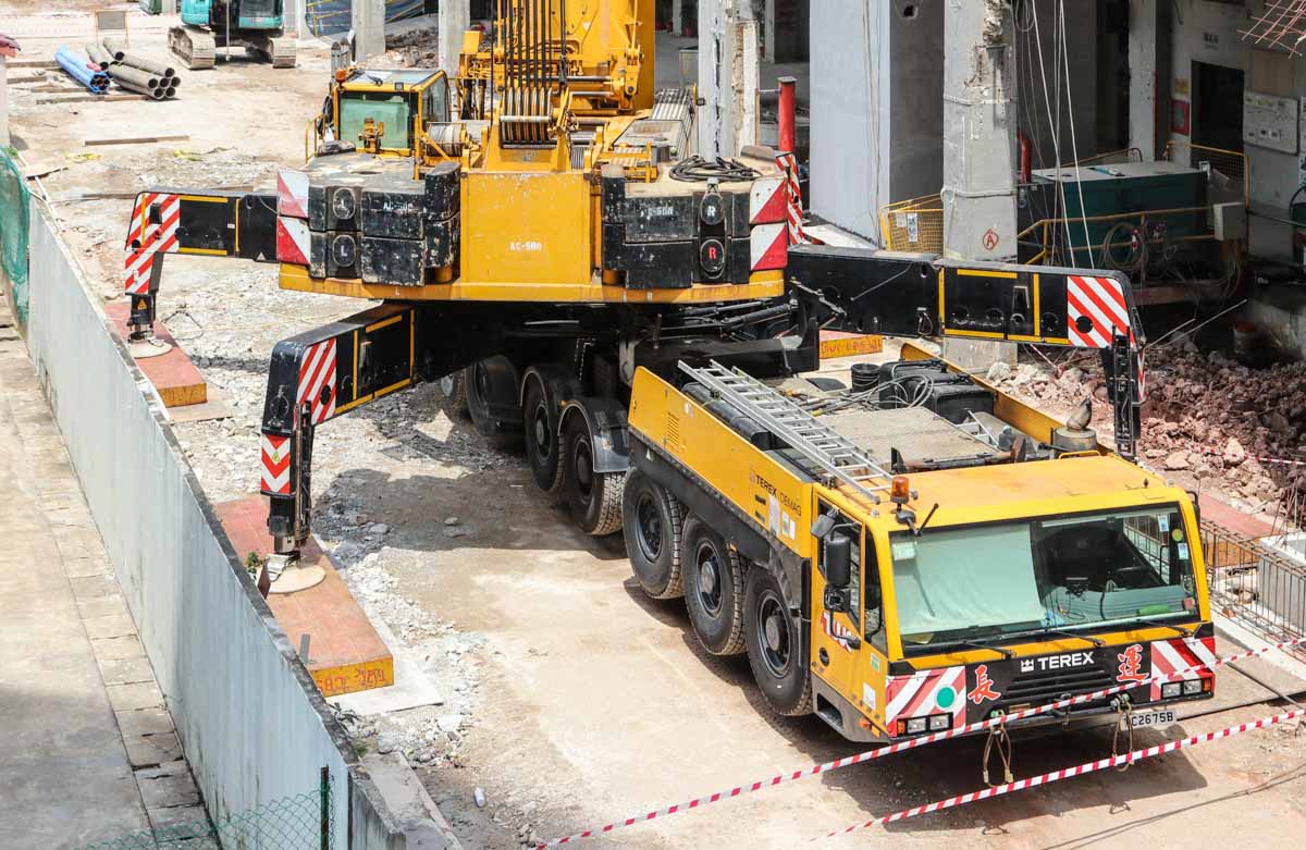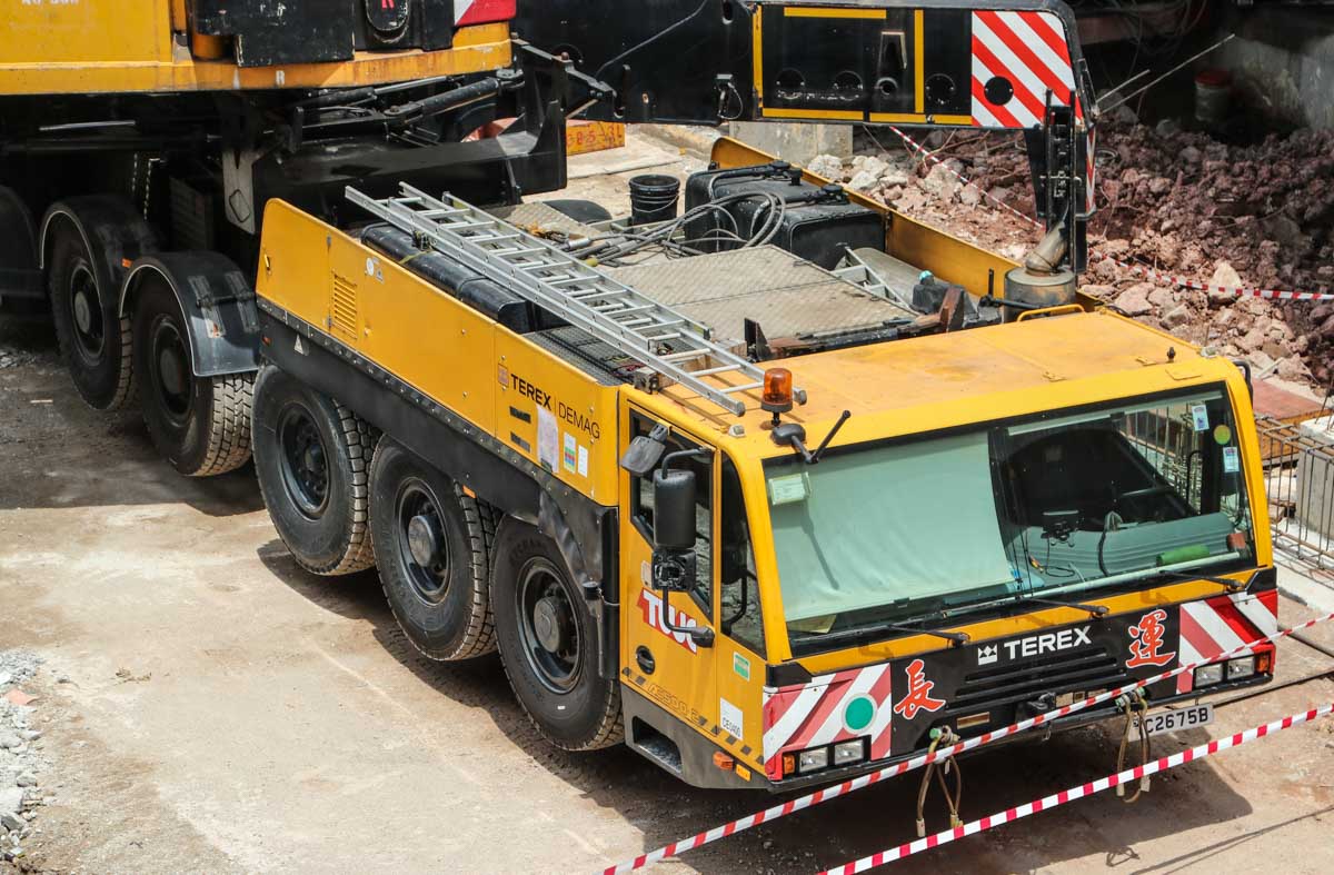 Dies ist der zweite Terex AC 500-2, den Tiong Woon aus Singapur (SG) einsetzt. Es handelt sich um einen 500-Tonnen-Mobilkran, montiert auf einem 8-achsigen Unterwagen.