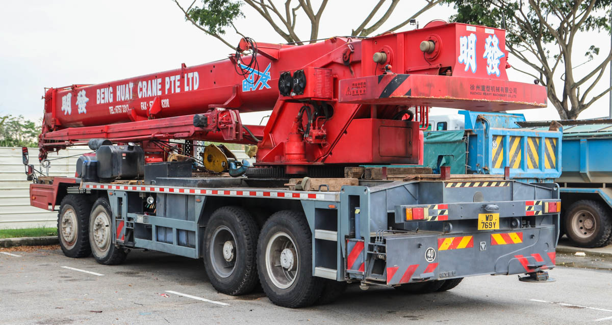 Dieser interessante XCMG QY55BY gehört zu Beng Huat aus Singapur (SG). Es handelt sich um einen 55-Tonnen-Kran, der auf einem 4-achsigen Unterwagen montiert ist. Das Baujahr des Krans ist 2016.