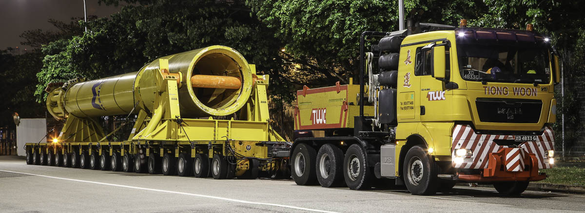 Dieser schöne MAN TGX 41.680 ist von Tiong Woon aus Singapur (SG) und wurde, wie den MAN TGX 26.480, auch für den Transport eines großen Hammers eingesetzt. Die Kombination besteht aus einer 4-Achs-Zugmaschine mit einem 12-Achs-Anhänger.