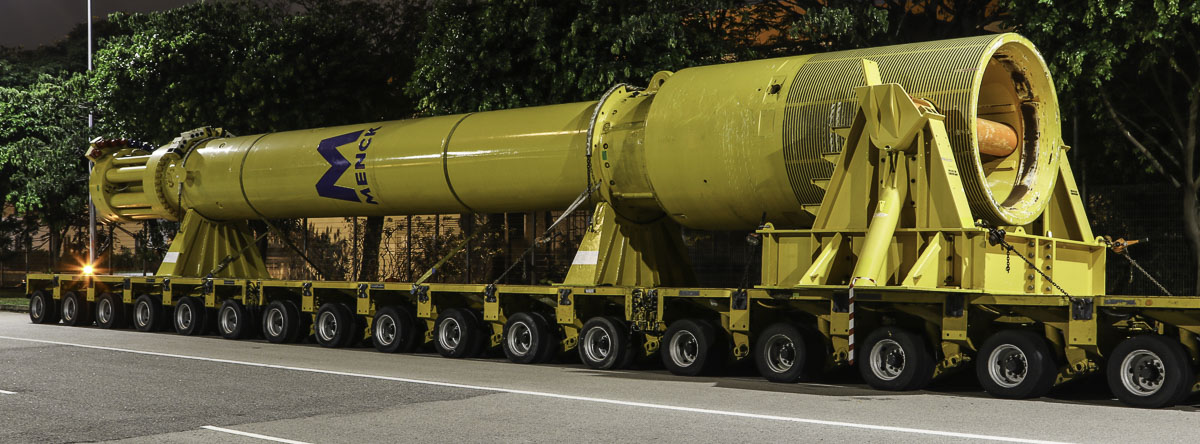 Die Ladung ist ein Menck MHU1900S Rammhammer mit einem Gesamtgewicht (inklusive Transportgestellen) von ca. 240 Tonnen.