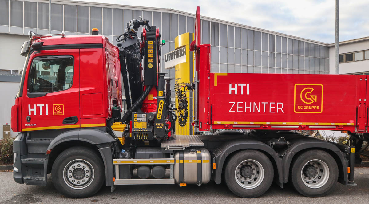Dieser attraktive Mercedes-Benz Actros 2645 von HTI Zehner aus Herrenberg-Gültstein (DE) wird für den Transport von Baumaterialien eingesetzt. Während eines Wochenendes stand die Kombination in einem Industriegebiet geparkt.
