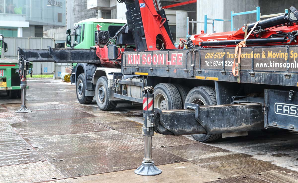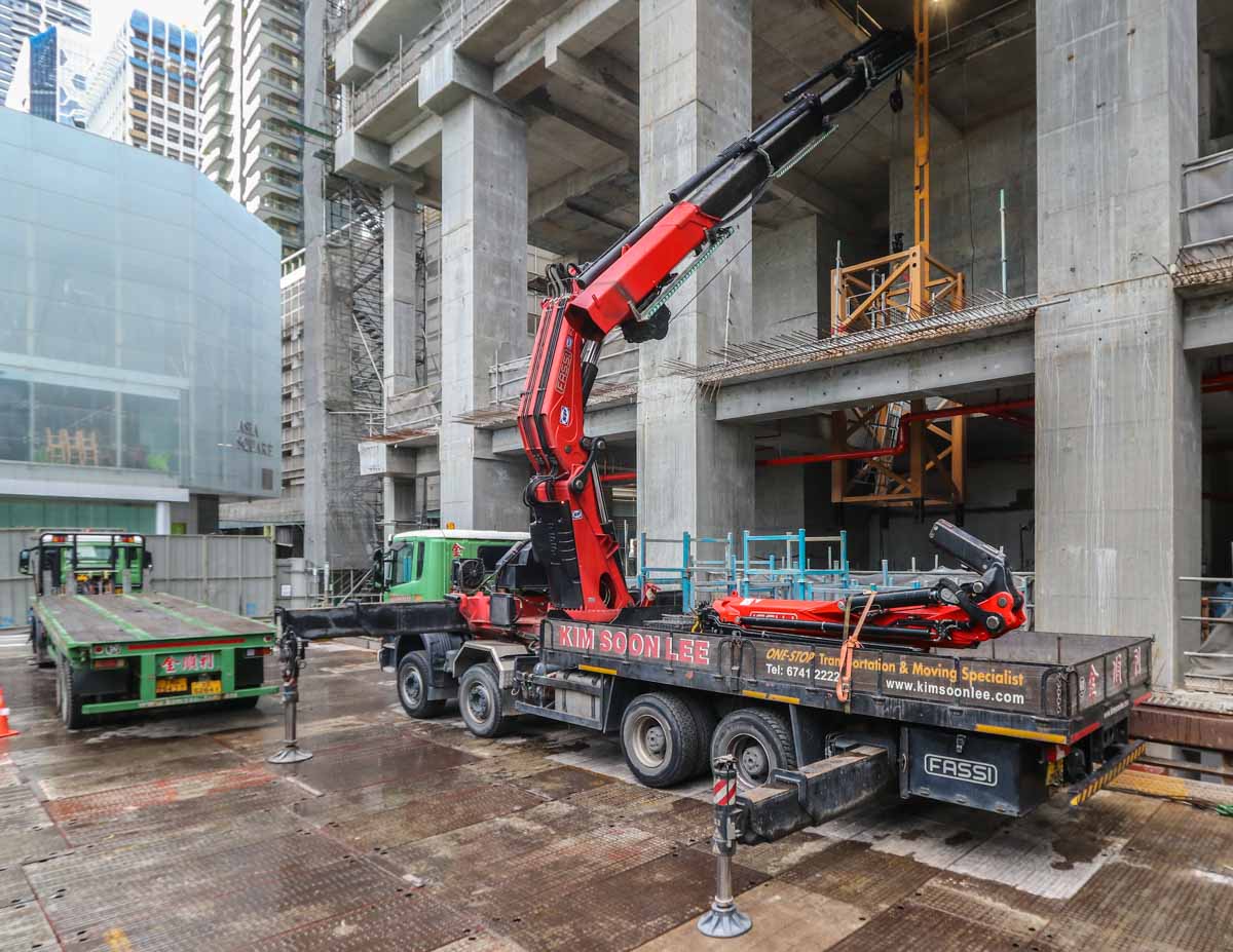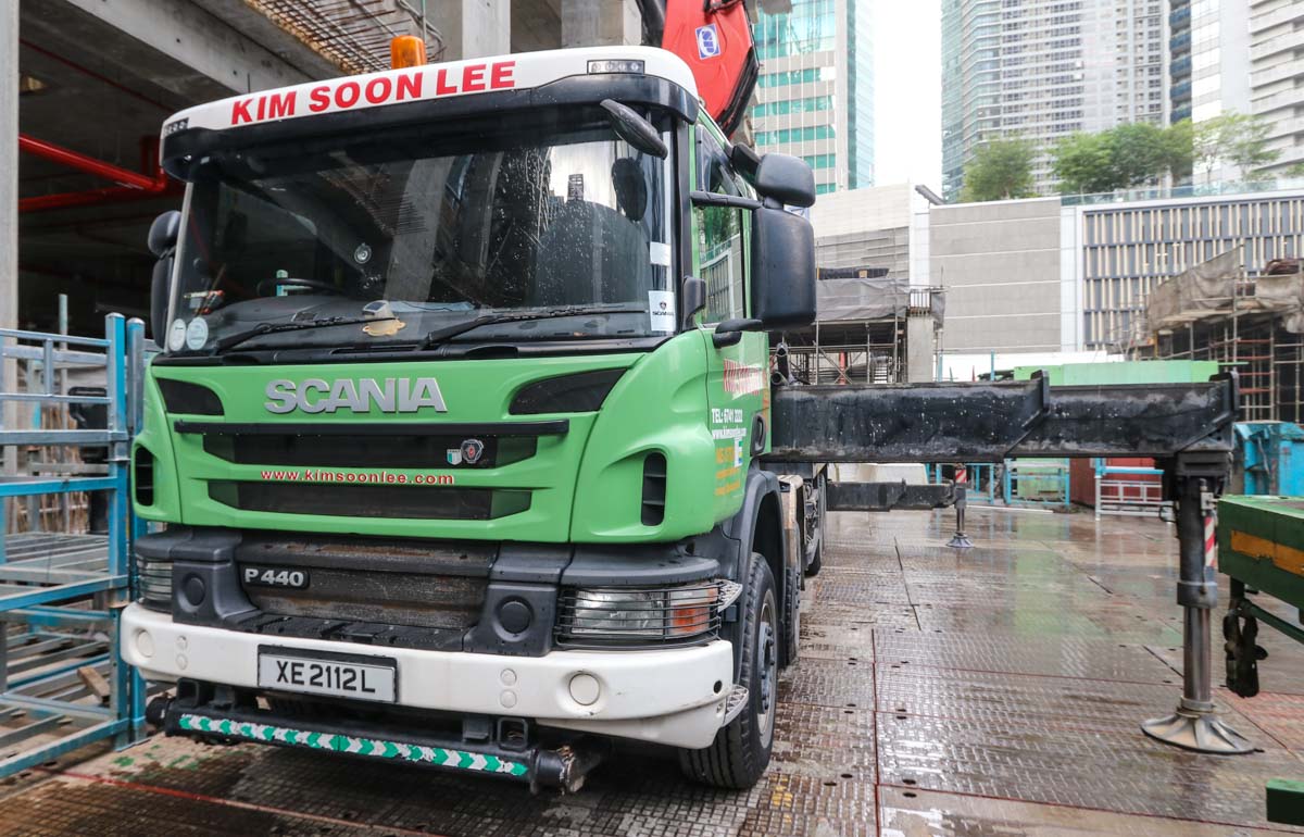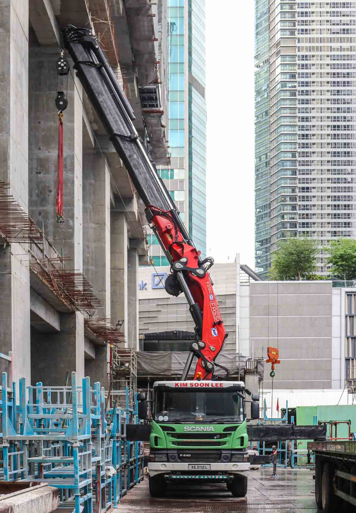 Dieser interessante Scania P 440 Pritschenwagen mit schwerem Ladekran von Kim Soon Lee aus Singapur (SG) sollte für einen besonderen Hebeeinsatz im Stadtzentrum eingesetzt werden.