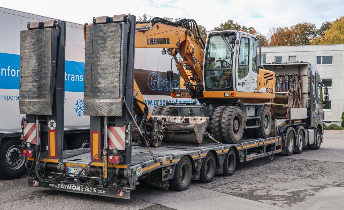 Die Ladung ist ein Liebherr A 900 C und ist etwa 8,55 Meter lang, 2,55 Meter breit und 3,16 Meter hoch. Das Gesamtgewicht beträgt etwa 16,5 Tonnen.
