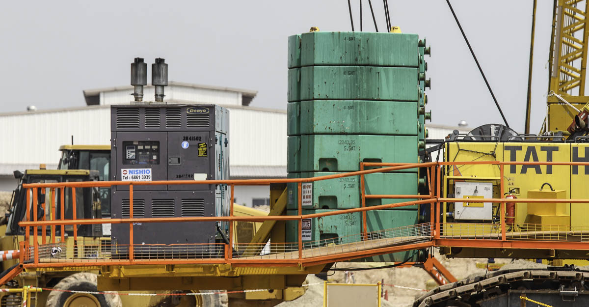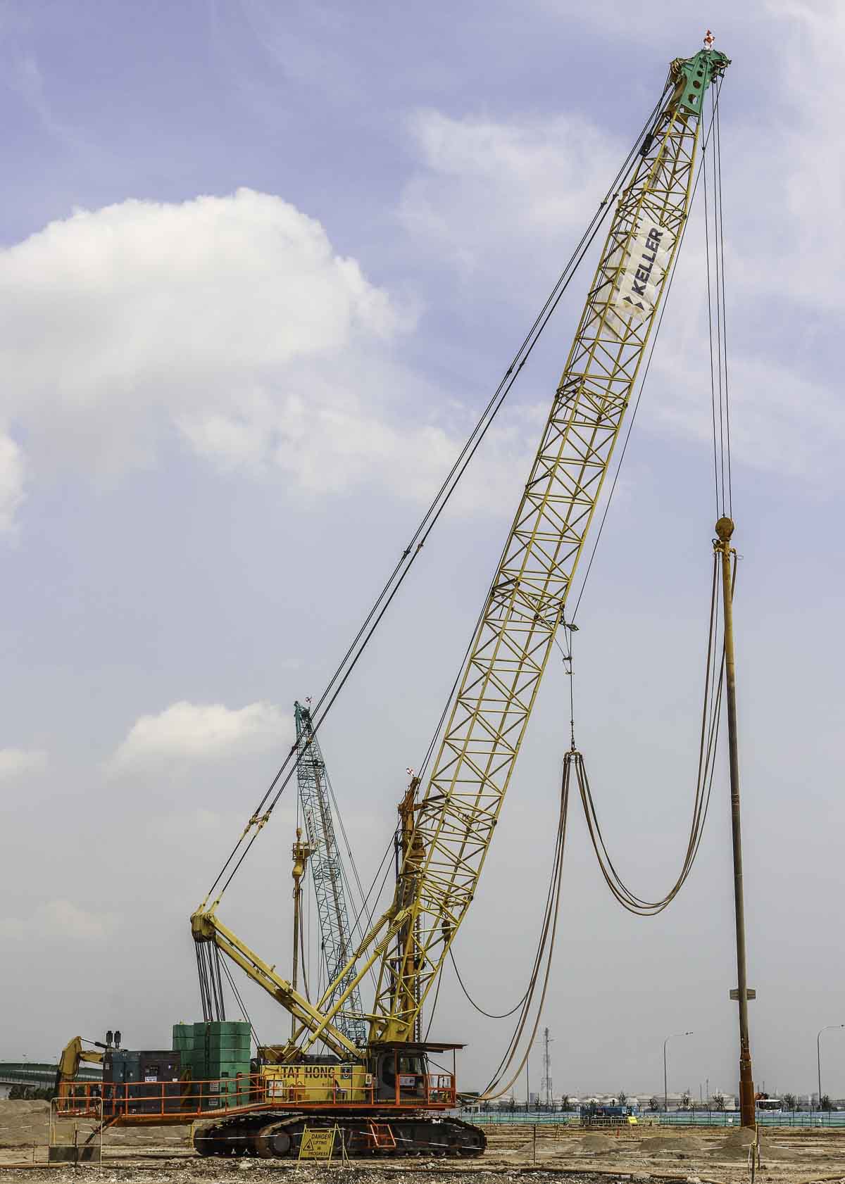 Dieser schöne Hitachi Sumitomo SCX2000A-2 von Tat Hong aus Singapur (SG) wurde zusammen mit einem Kobelco CKE2500-2 und einem Kobelco 7120S auf einer Baustelle zur dynamische Bodenverdichtung eingesetzt.