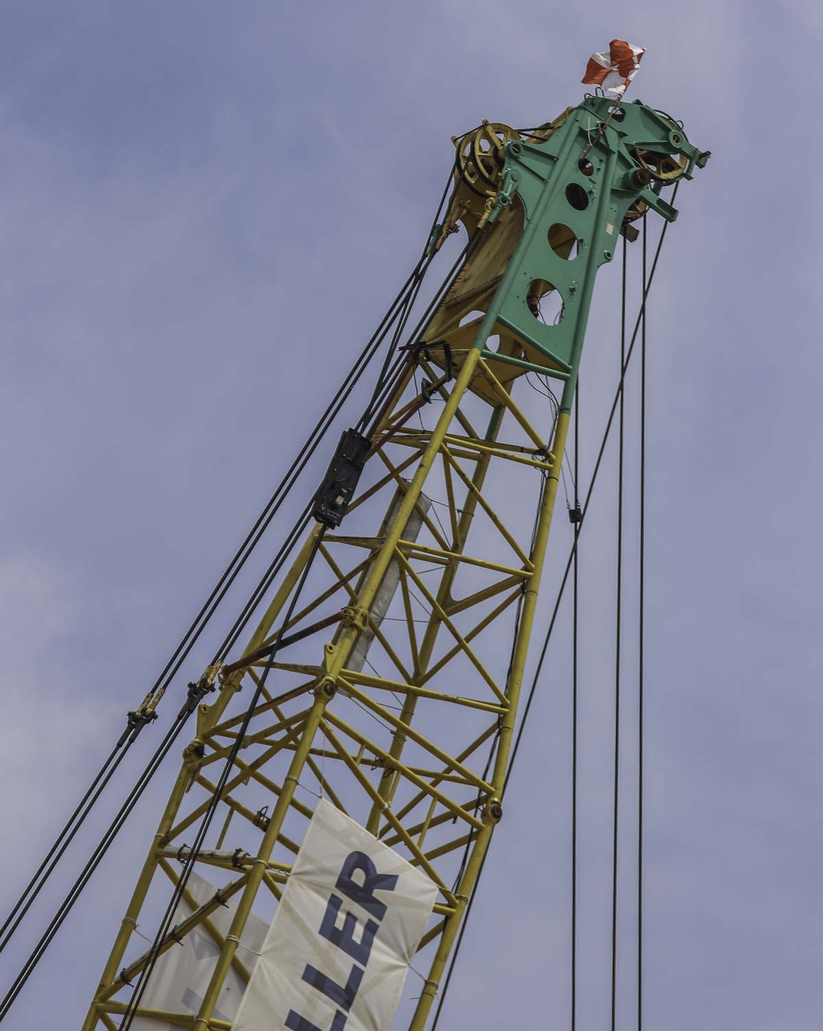 Auf dieser Baustelle wurde der kran mit einem 45,75 Meter langen Hauptausleger betrieben. In dieser Konfiguration kann der Kran maximal 80 Tonnen bei 9 Meter Ausladung oder 13,3 Tonnen bei 41,2 Metern Ausladung heben.