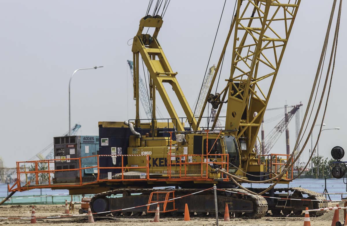 Dieser schöne Kobelco 7120S von Keller aus Singapur (SG) wurde auf einer Baustelle in Singapur für Rütteldruckverdichtung eingesetzt. Es handelt sich um einen 120-Tonnen-Raupenkran.