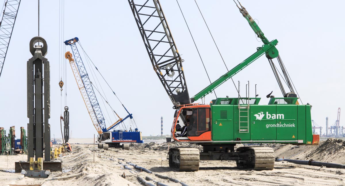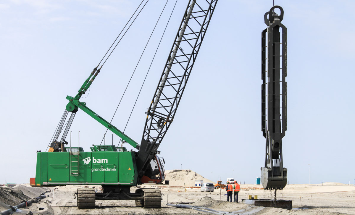 Zusammen mit dem Liebherr HS 875 HD von Volker Staal Funderingen und einen HS 875 HD von Zwagerman VMT.