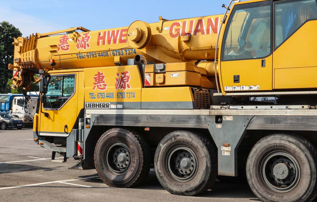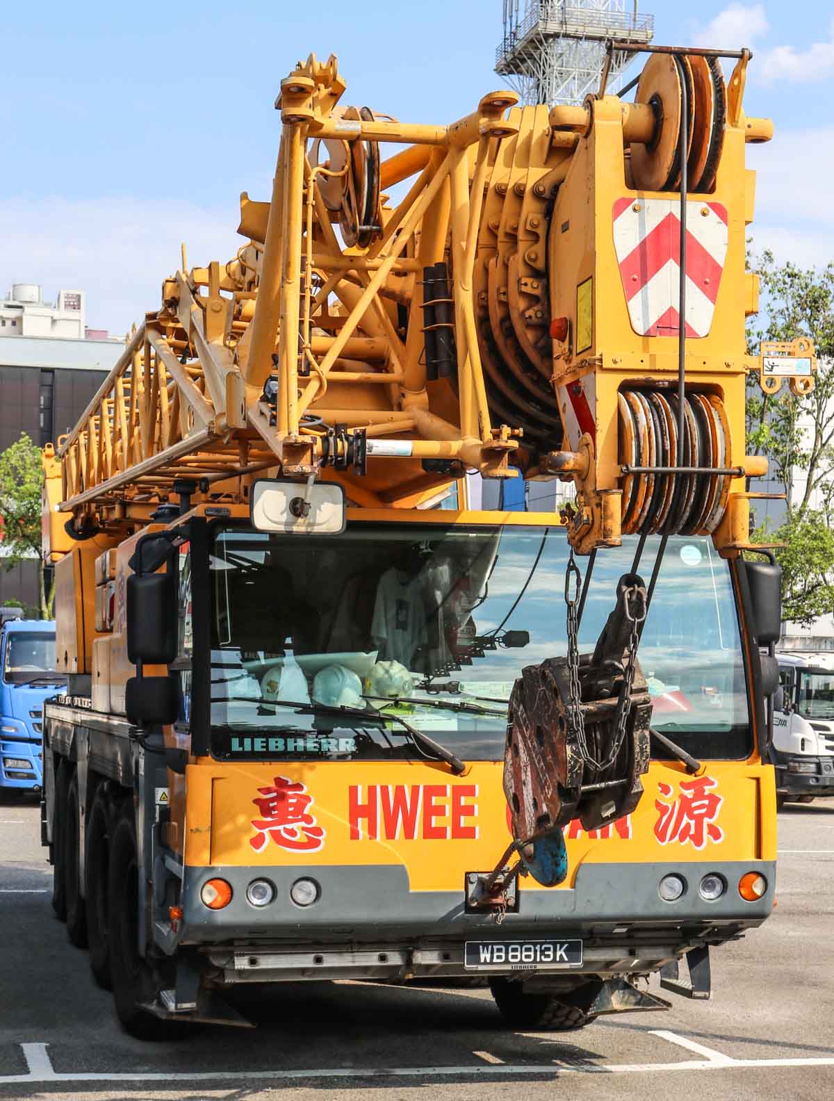 This Liebherr LTM 1070-4.2 from model year 2013 is operated by Hwee Guan from Singapore (SG). It is a 70-ton crane mounted on a 4-axle carrier.