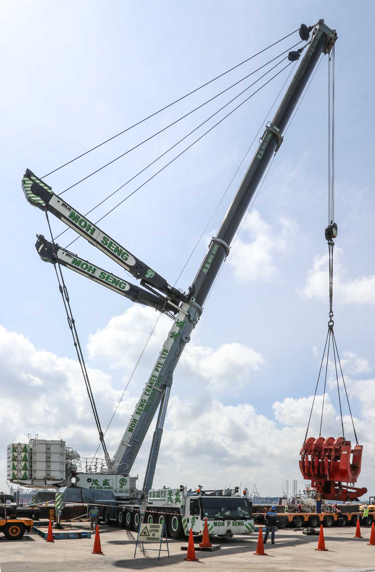 A very impressive and powerful crane from Moh Seng! Unfortunately, this crane is no longer in operation today; their largest crane is now an XCMG XCA900L8.