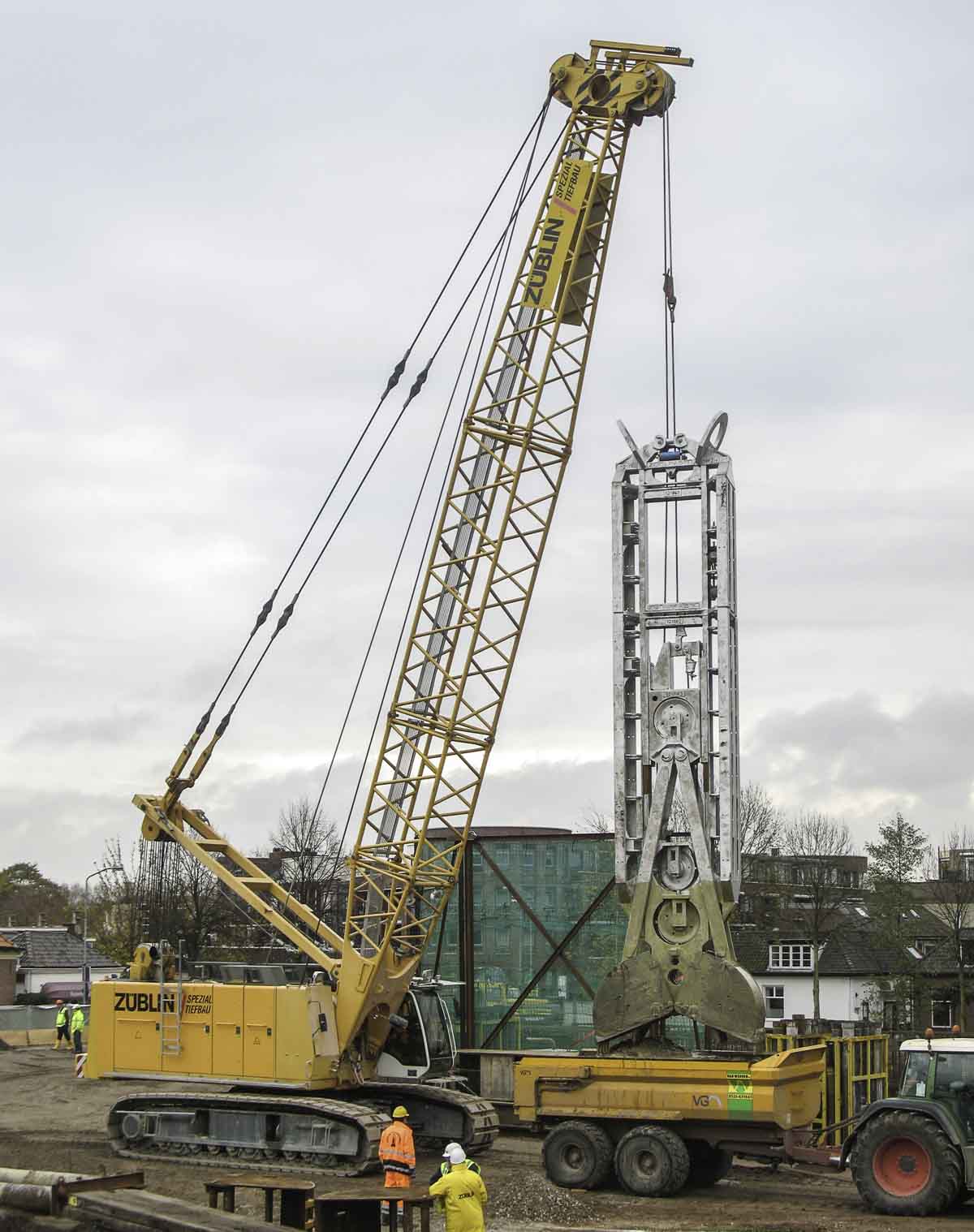 This interesting Liebherr HS 885 HD belongs to Züblin Spezialtiefbau from Stuttgart (DE) and was used on a construction site in Harderwijk (NL) to make a slurry wall foundation for an underground parking, using a mechanical slurry wall grab.