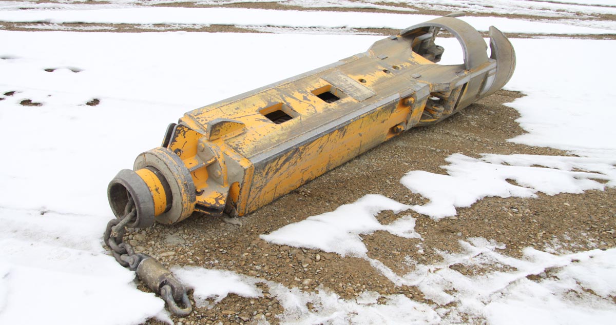 Attached to the undercarriage is the large Nordmeyer casing oscillator. The oscillator must be fixed to the undercarriage due the large reaction loadings out of the drilling operation.