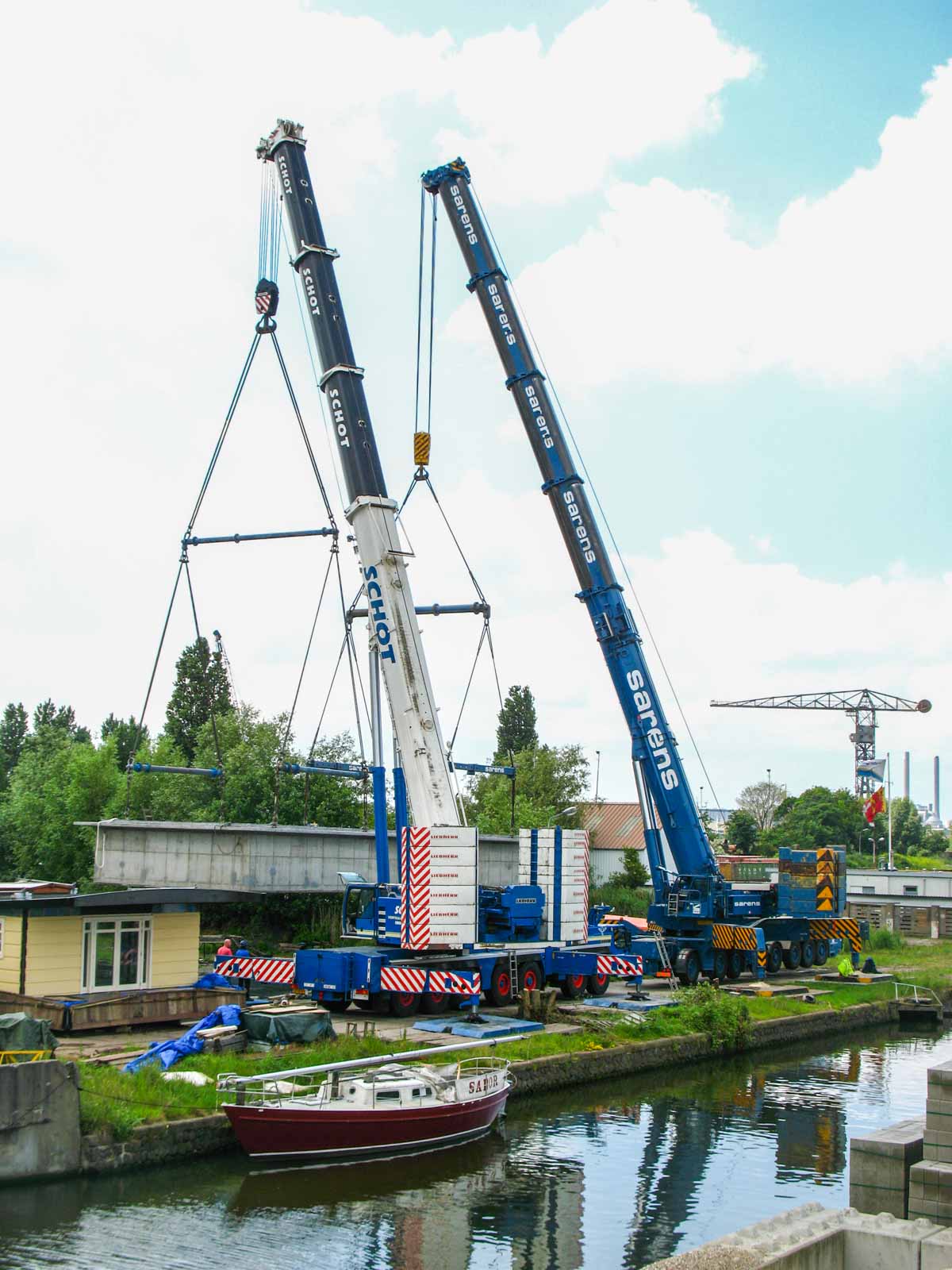 Schot setzte ihren (damals) größten Kran ein; den Liebherr LTM 1400-7.1. Hier aufgebaut mit der maximalen Ballastierung von 140 Tonnen.