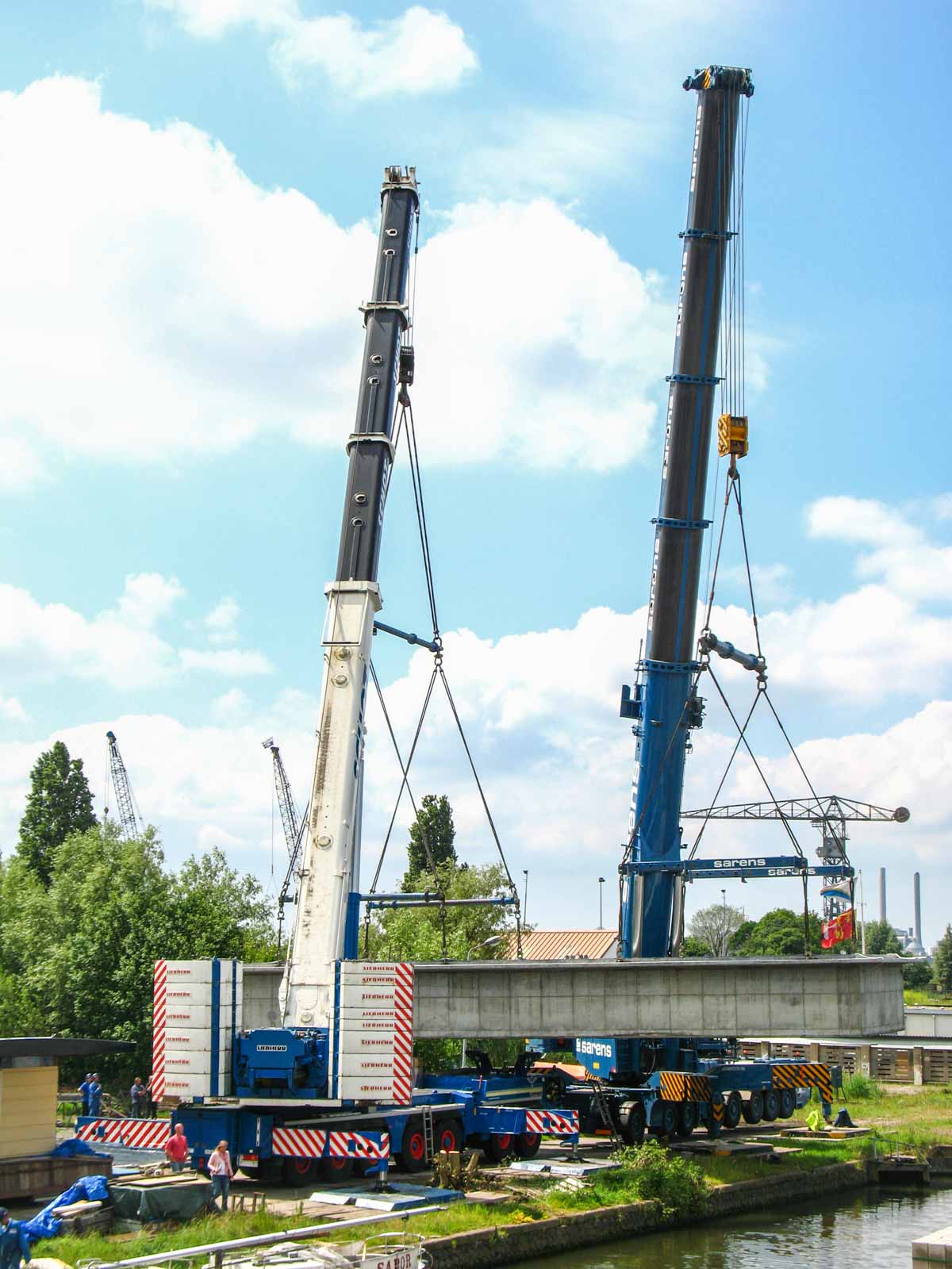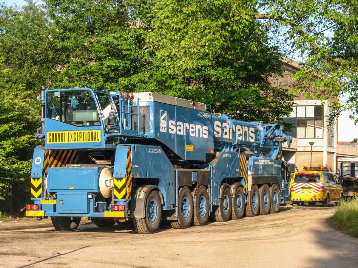 Bei Sarens wurde ein Terex AC 500-2 angemietet; dieser Kran wurde mit einer Ballastierung von 120 Tonnen aufgebaut.