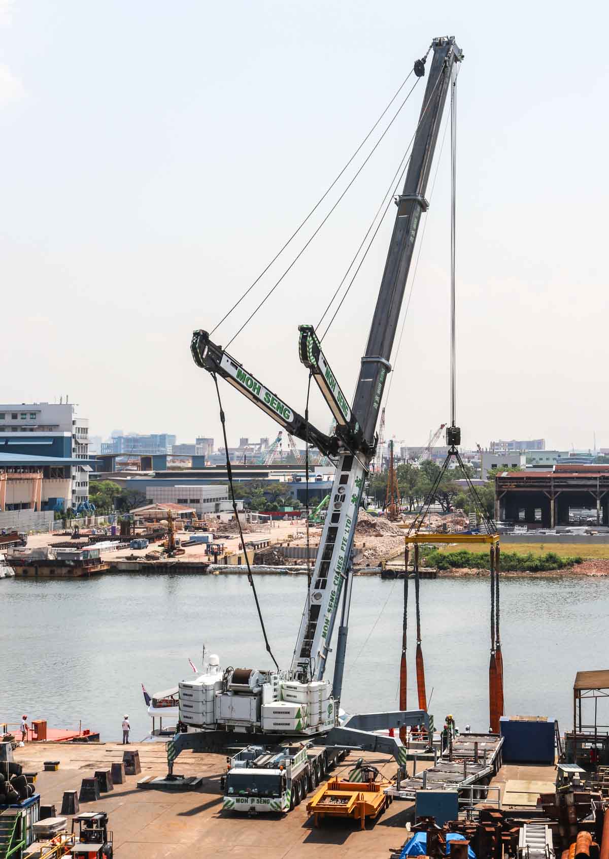 Es handelt sich um einen 750-Tonnen-Mobilkran, der auf einem 9-Achs-Fahrgestell aus dem Baujahr 2014 montiert ist. Der Kran ist nicht mehr bei Moh Seng im Einsatz und arbeitet inzwischen in der Türkei. Moh Seng hat nun einen 900-Tonnen-XCMG XCA900L8 als größten Kran der Flotte in Betrieb genommen.