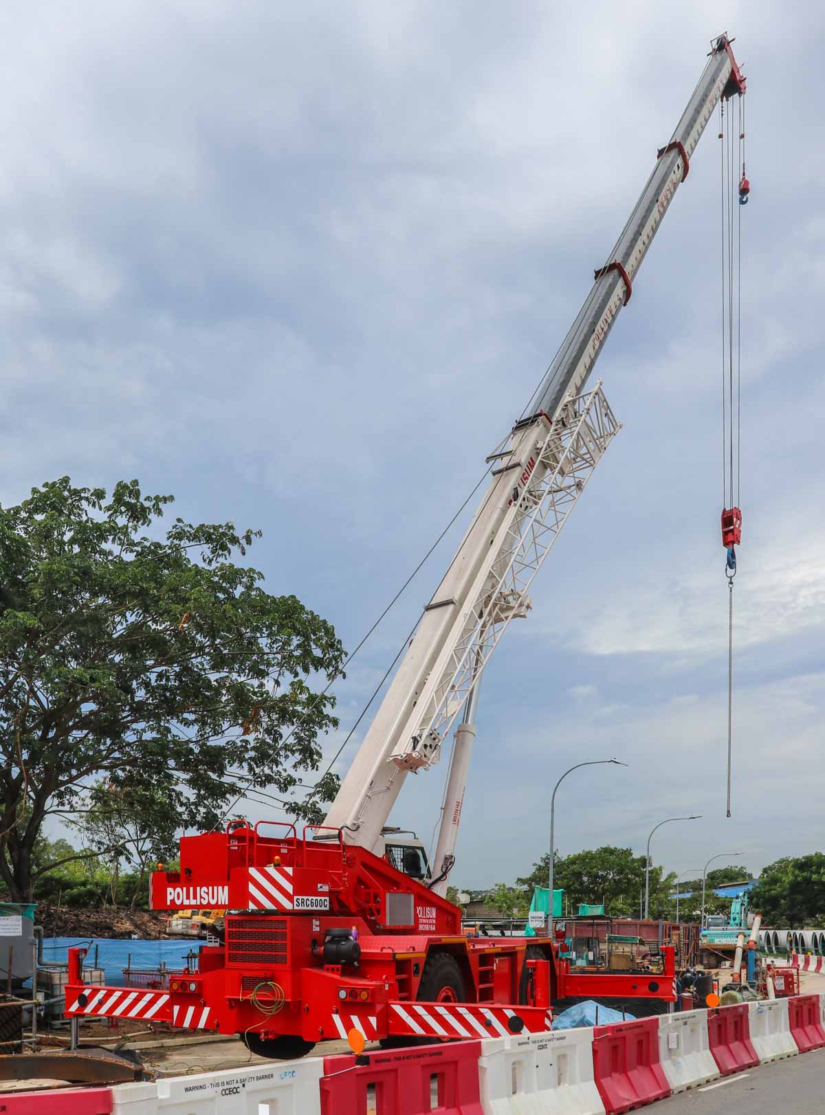 Dieser interessante Sany SRC600C stammt von Pollisum aus Singapur (SG) und wurde dort auf einer Baustelle eingesetzt. Es handelt sich um einen 60-Tonnen-Geländekran aus dem Baujahr 2021.