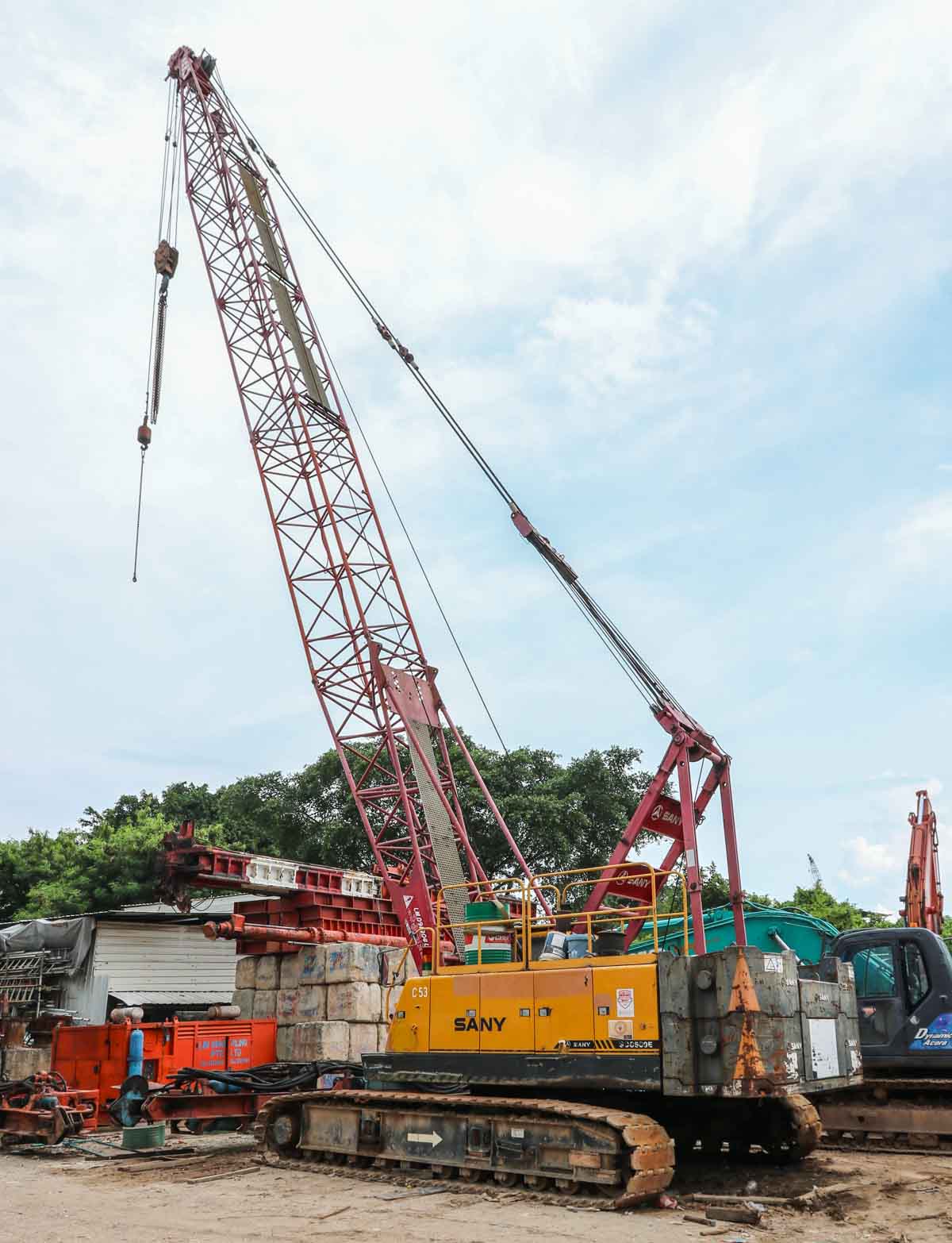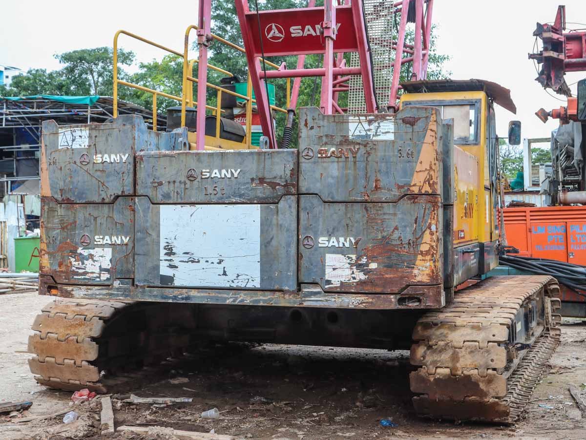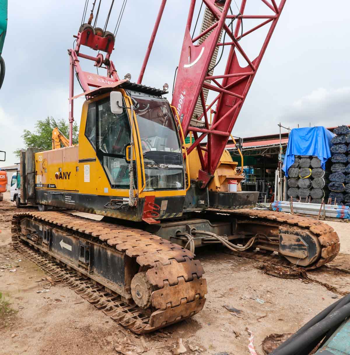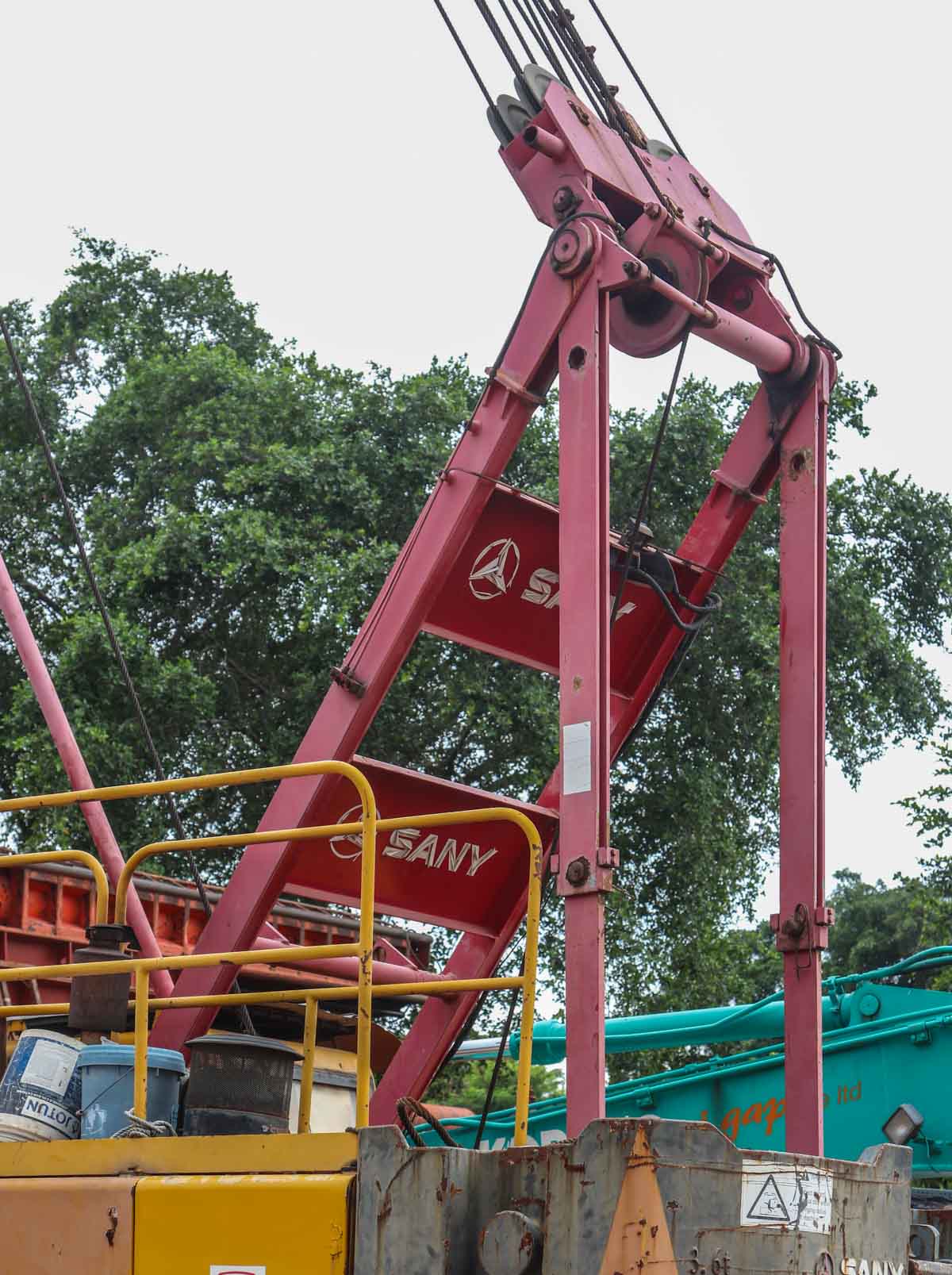 Dieser Sany SCC500E wurde auf einem kleinen Werftgelände in Singapur (SG) eingesetzt. Es handelt sich um einen 50-Tonnen-Raupenkran aus dem Baujahr 2009.