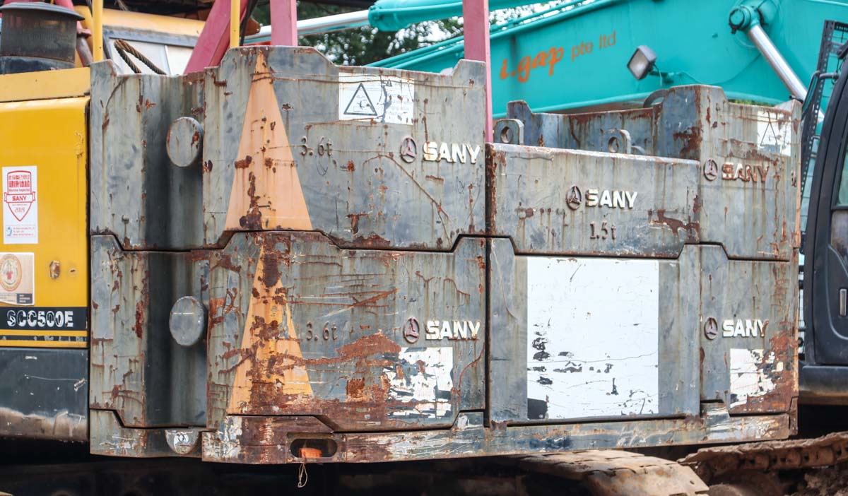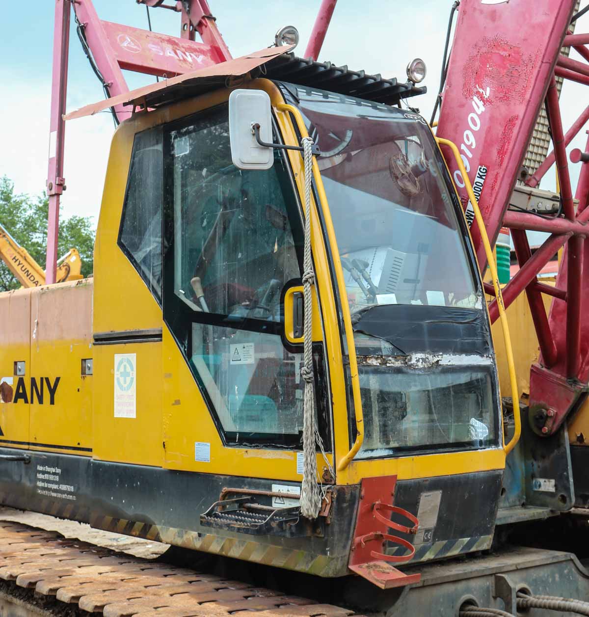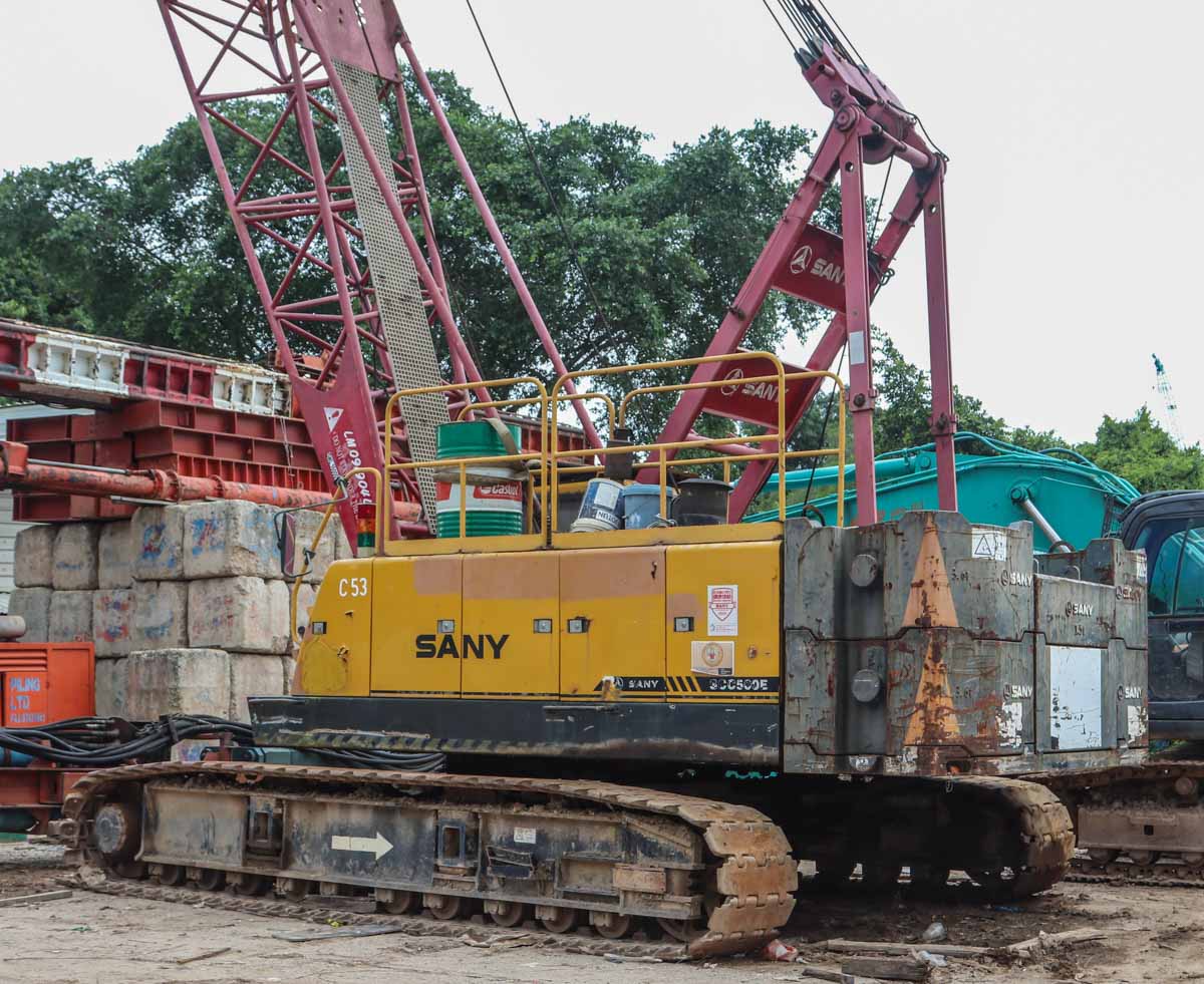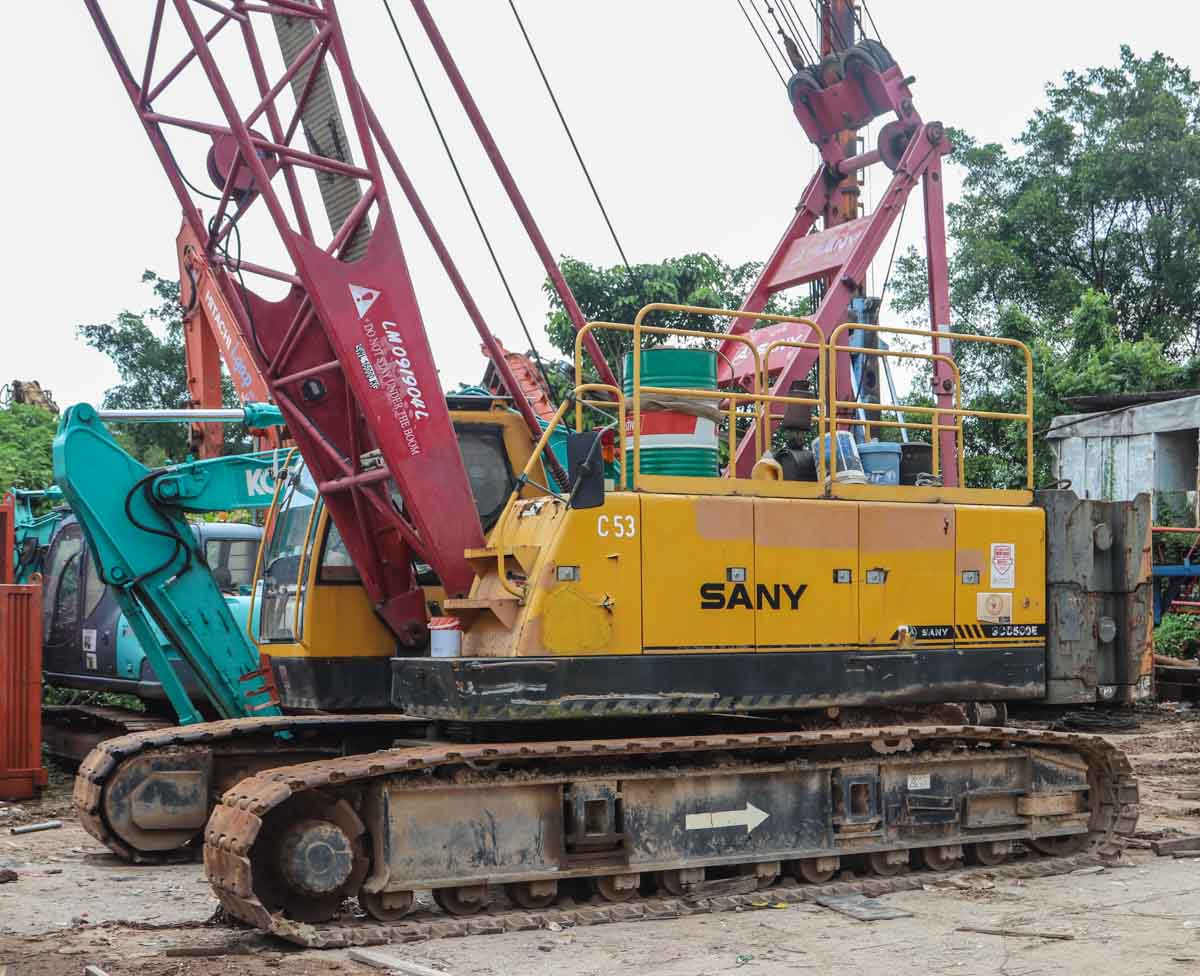Dieser Sany SCC500E wurde auf einem kleinen Werftgelände in Singapur (SG) eingesetzt. Es handelt sich um einen 50-Tonnen-Raupenkran aus dem Baujahr 2009.