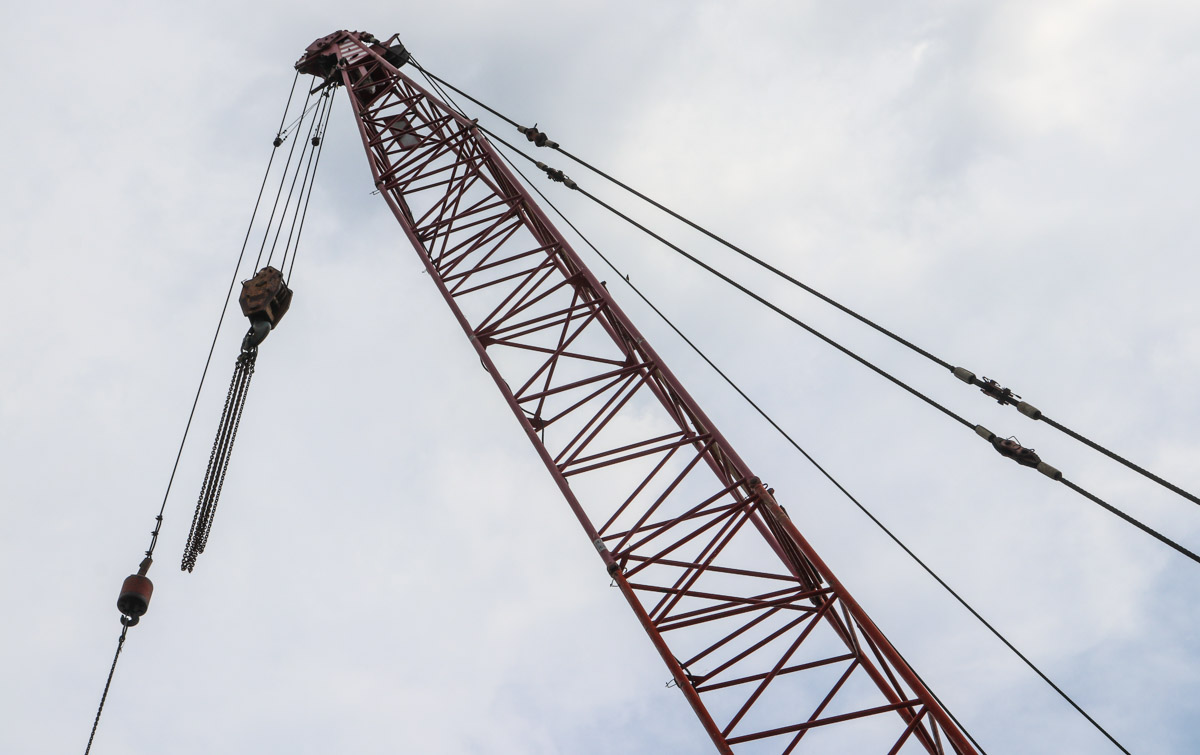 Der Kran ist mit zwei 6-Tonnen-Hubwinden ausgestattet, die hier beide in Betrieb sind. Beide Winden sind mit einem 20-mm-Hubseil versehen.