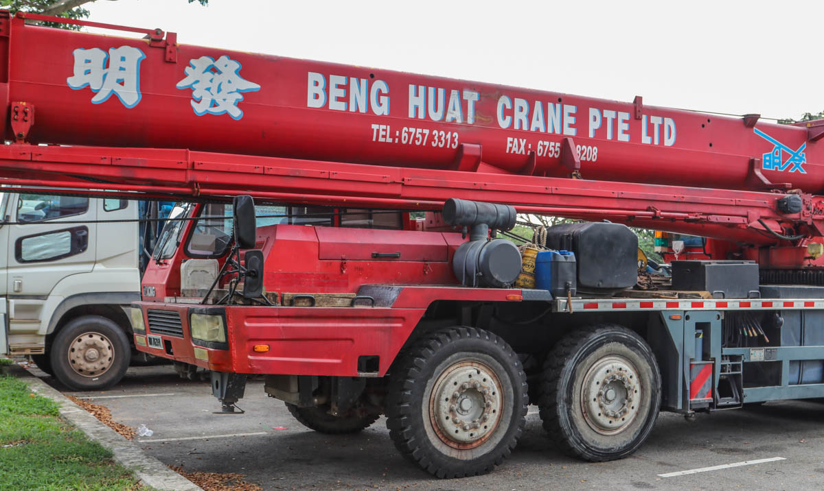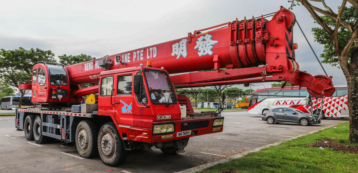 Dieser interessante XCMG QY55BY gehört zu Beng Huat aus Singapur (SG). Es handelt sich um einen 55-Tonnen-Kran, der auf einem 4-achsigen Unterwagen montiert ist. Das Baujahr des Krans ist 2016.