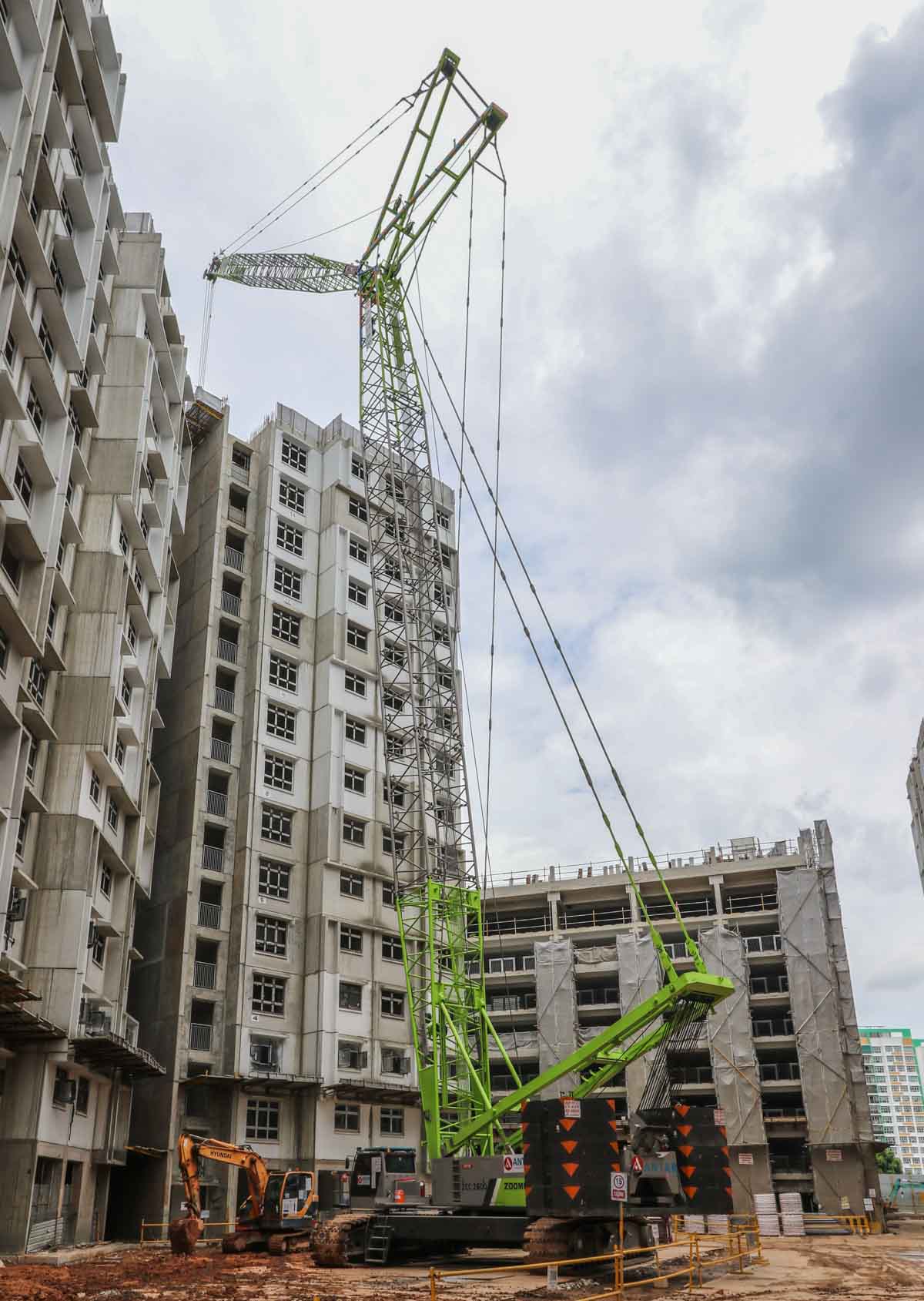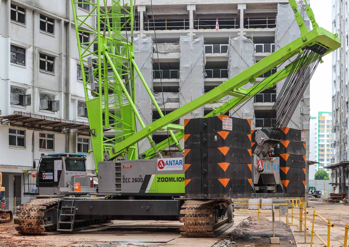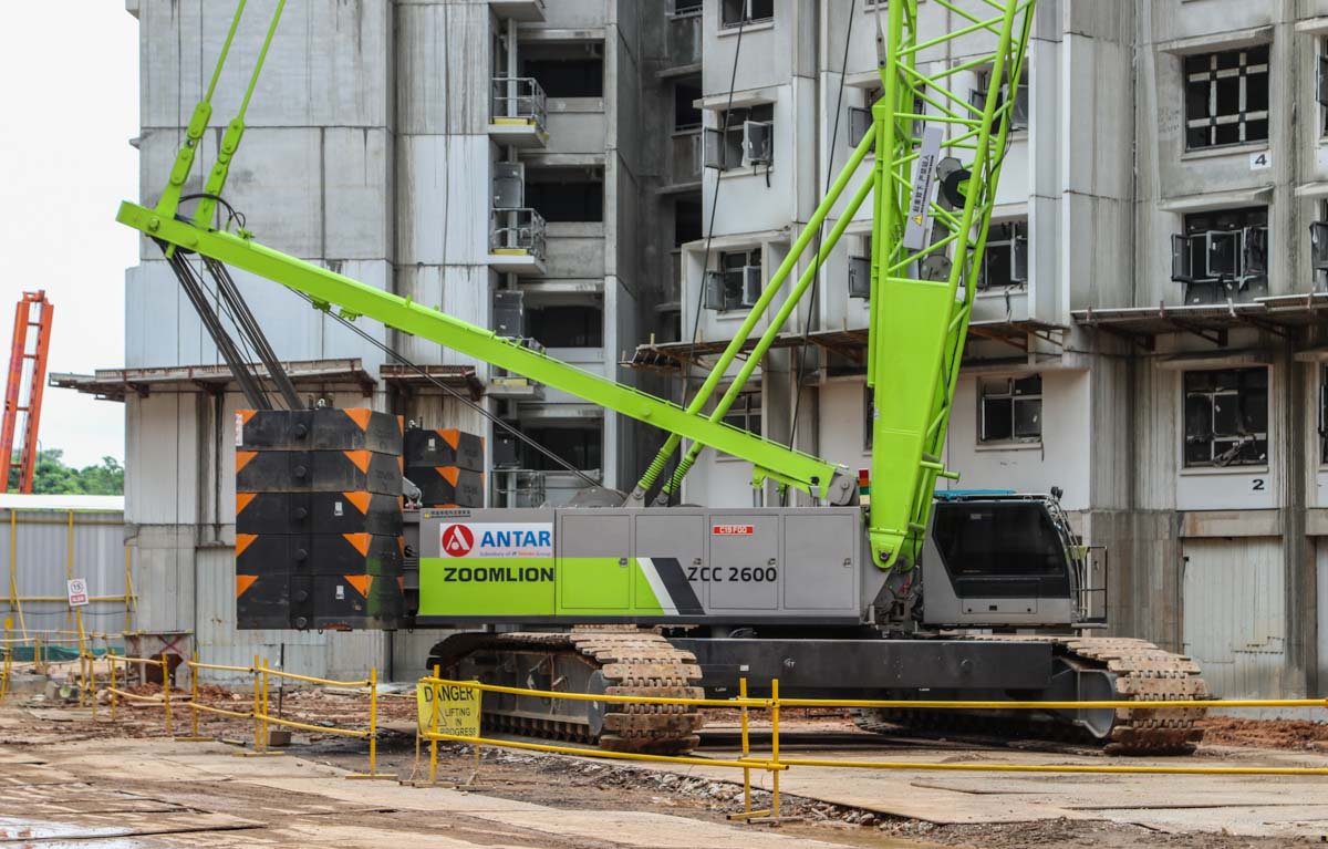 Dieser beeindruckende Zoomlion ZCC2600 gehört Antar aus Singapur (SG) und wurde dort auf einem großen Bauprojekt für die Errichtung von Wohngebäuden eingesetzt. Es handelt sich um einen Raupenkran mit einer Tragfähigkeit von 260 Tonnen aus dem Baujahr 2019.