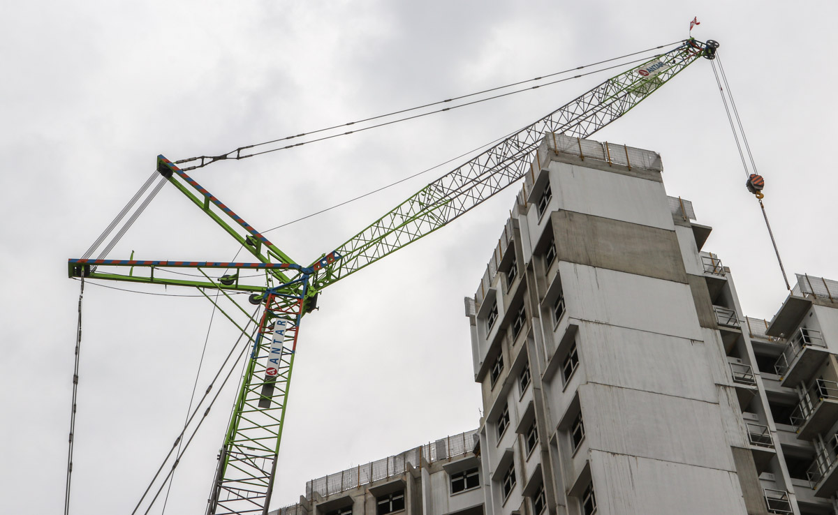 Dieser Kran war mit einem 33 Meter langen Wippausleger aufgebaut.