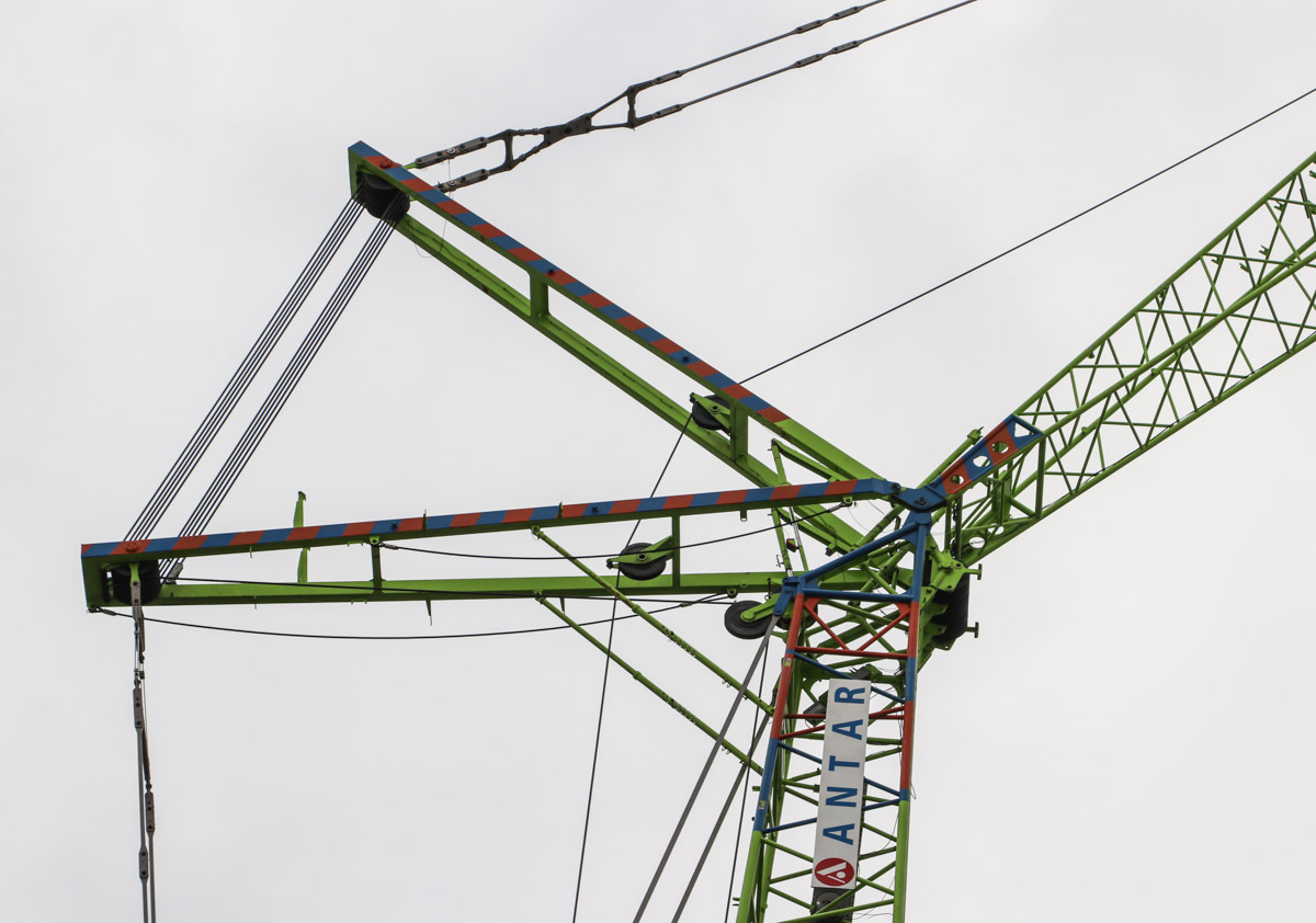 Dieser Kran ist mit einem 44 Meter langen Hauptausleger und einem 33 Meter langen Wippausleger aufgebaut. Ein beeindruckender Kran von Antar!
