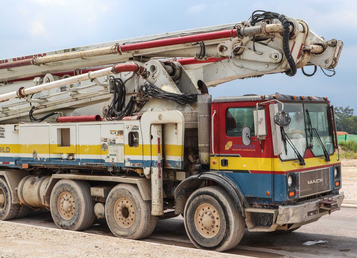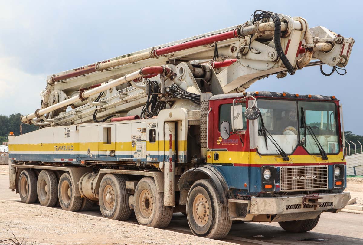 Dieser interessante Mack MR688S mit Schwing S 52 SX Betonpumpe gehört zu Teambuild aus Singapur (SG). Das Fahrzeug war während eines Wochenendes vor einer großen Baustelle geparkt. Das Fahrzeug stammt aus dem Baujahr 2008.