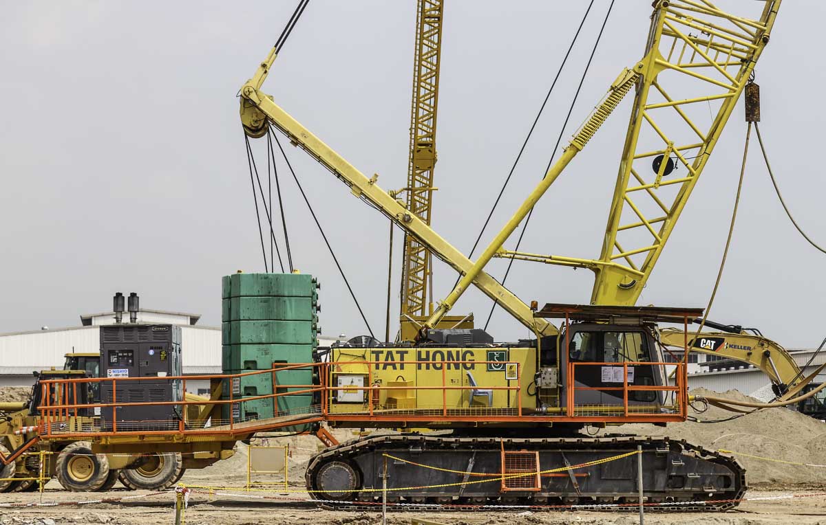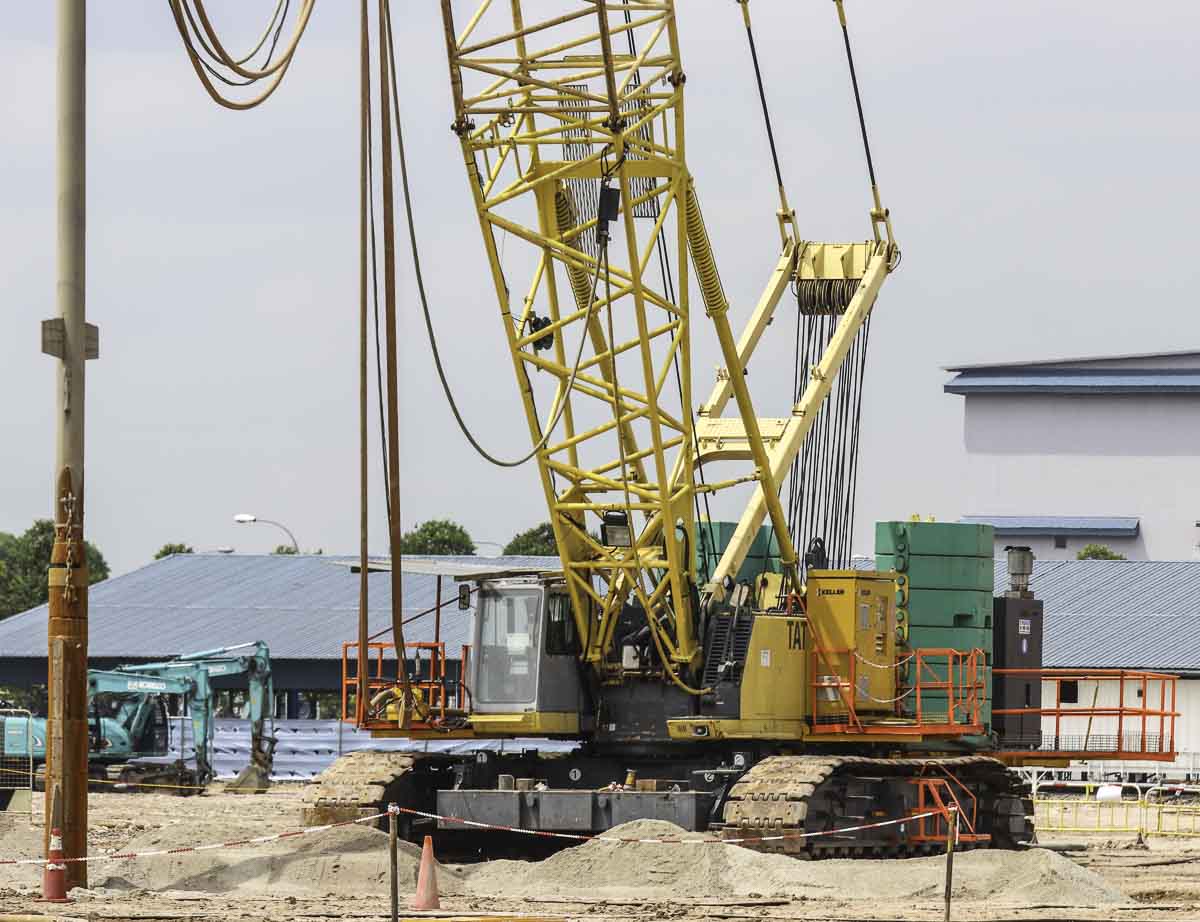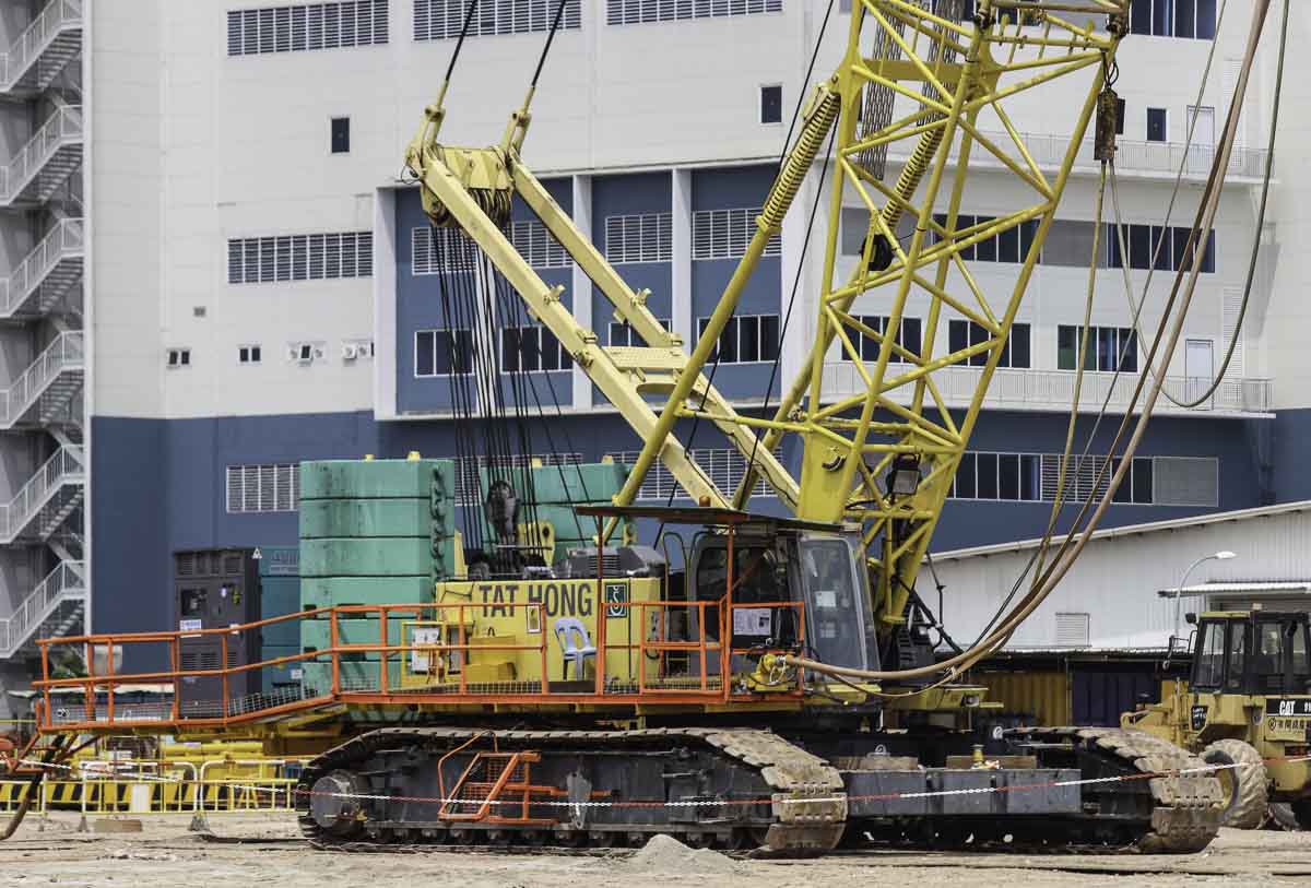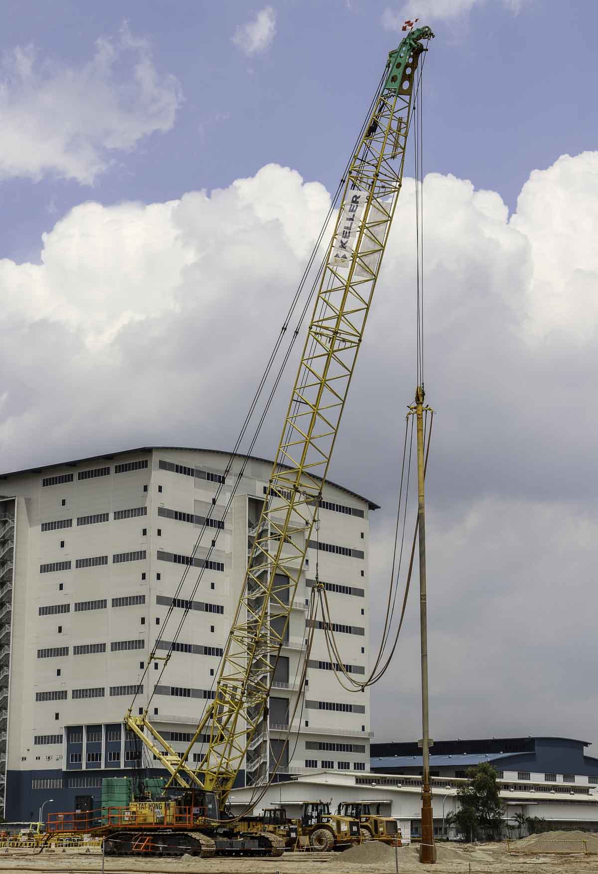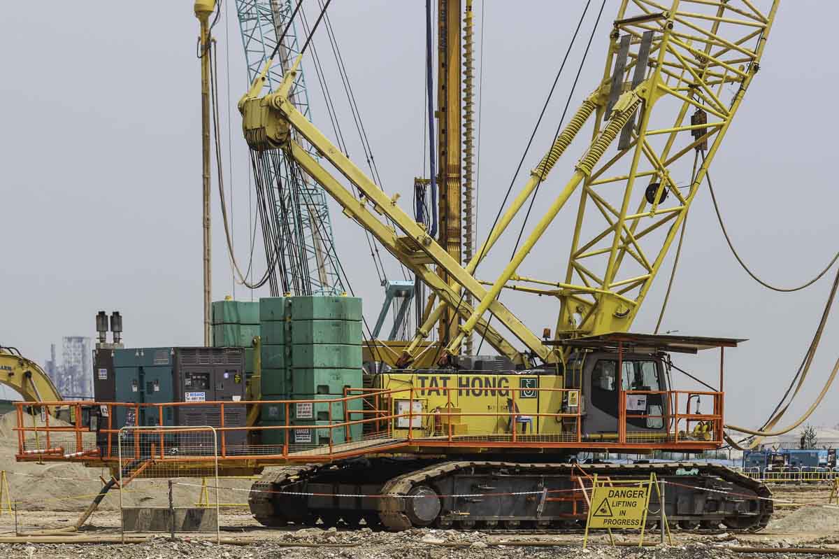 Dieser schöne Hitachi Sumitomo SCX2000A-2 von Tat Hong aus Singapur (SG) wurde zusammen mit einem Kobelco CKE2500-2 und einem Kobelco 7120S auf einer Baustelle zur dynamische Bodenverdichtung eingesetzt.