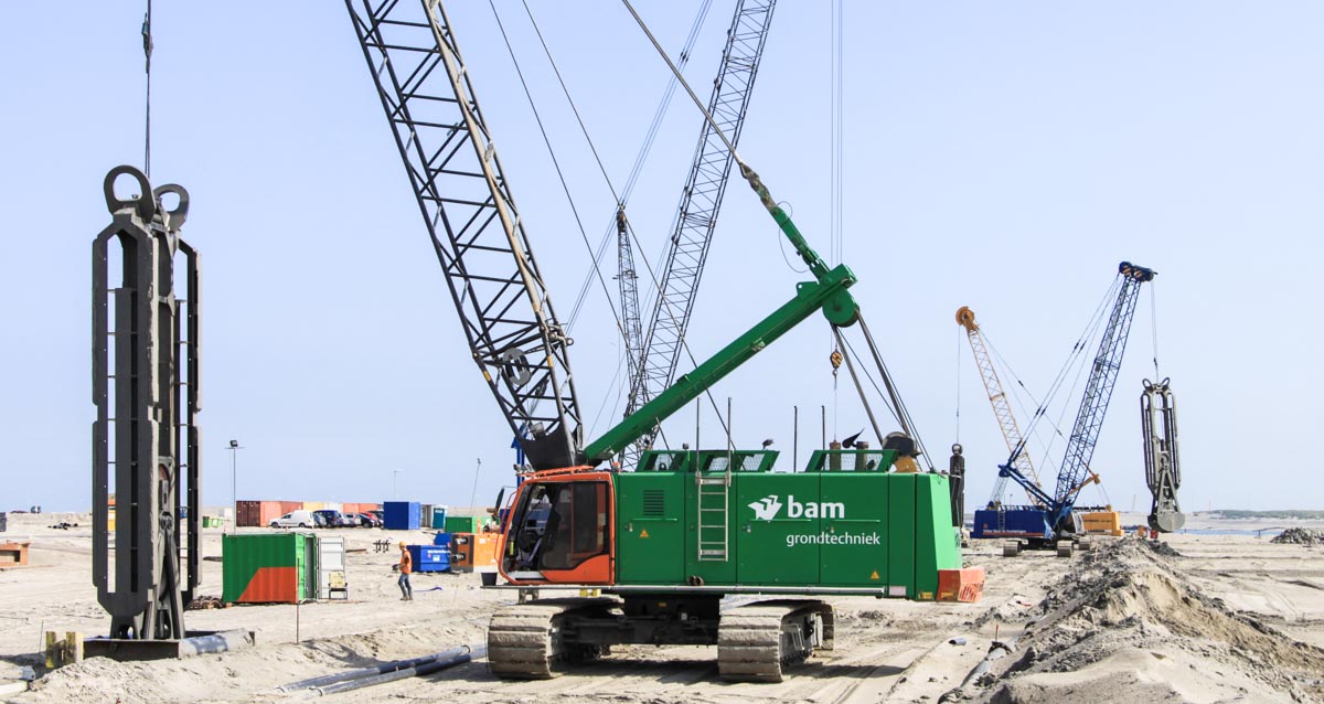 Zusammen mit dem Liebherr HS 875 HD von Volker Staal Funderingen und einen HS 875 HD von Zwagerman VMT.