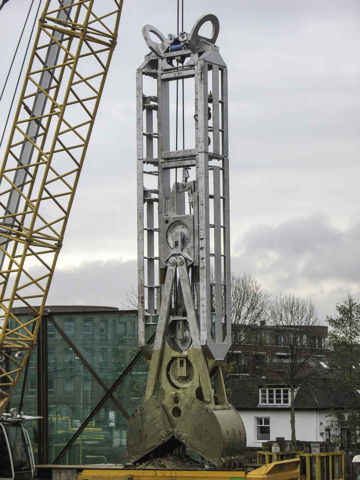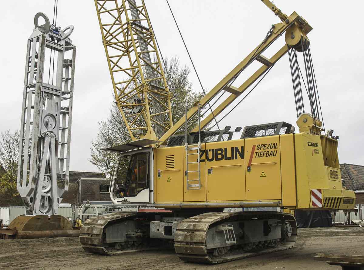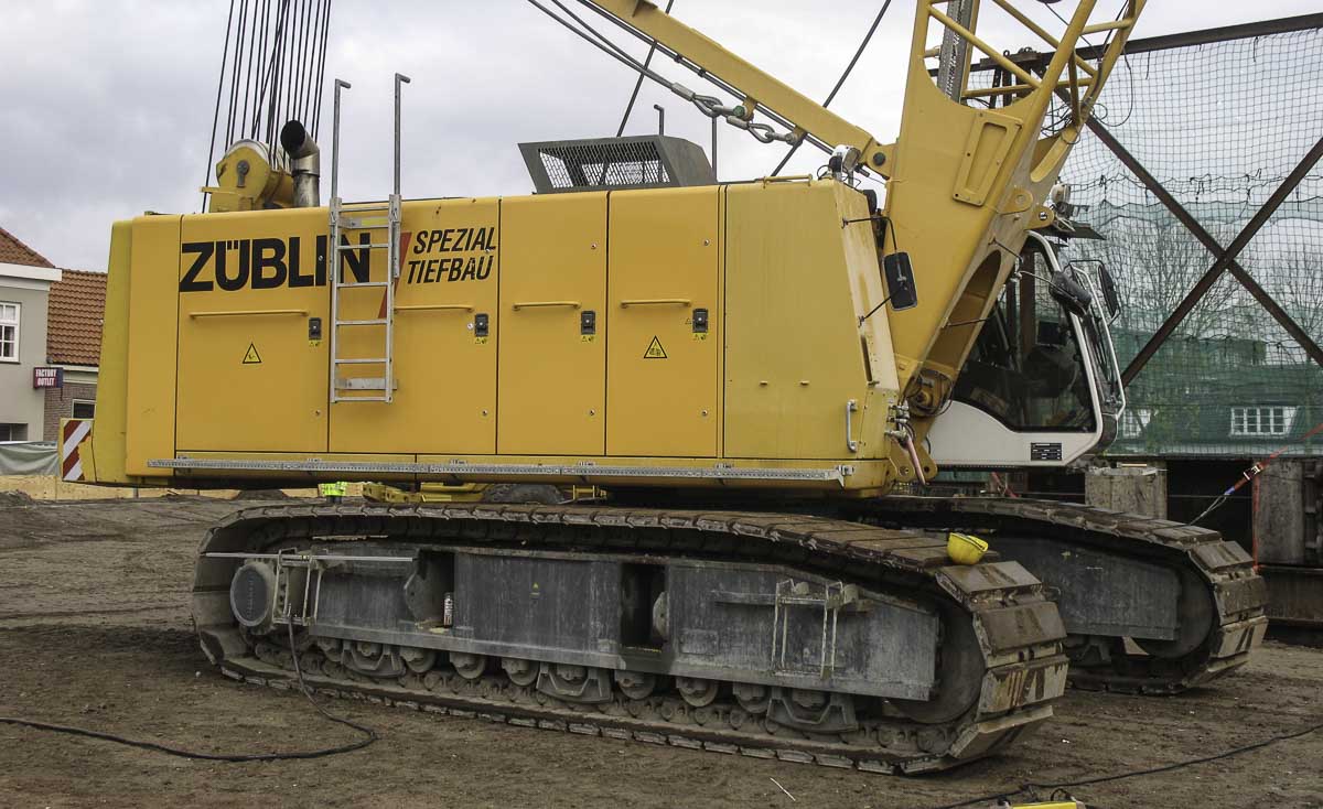 Dieser interessante Liebherr HS 885 HD ist von Züblin Spezialtiefbau aus Stuttgart (DE) und wurde auf einer Baustelle in Harderwijk (NL) mit einem mechanischen Schlitzwandgreifer eingesetzt.