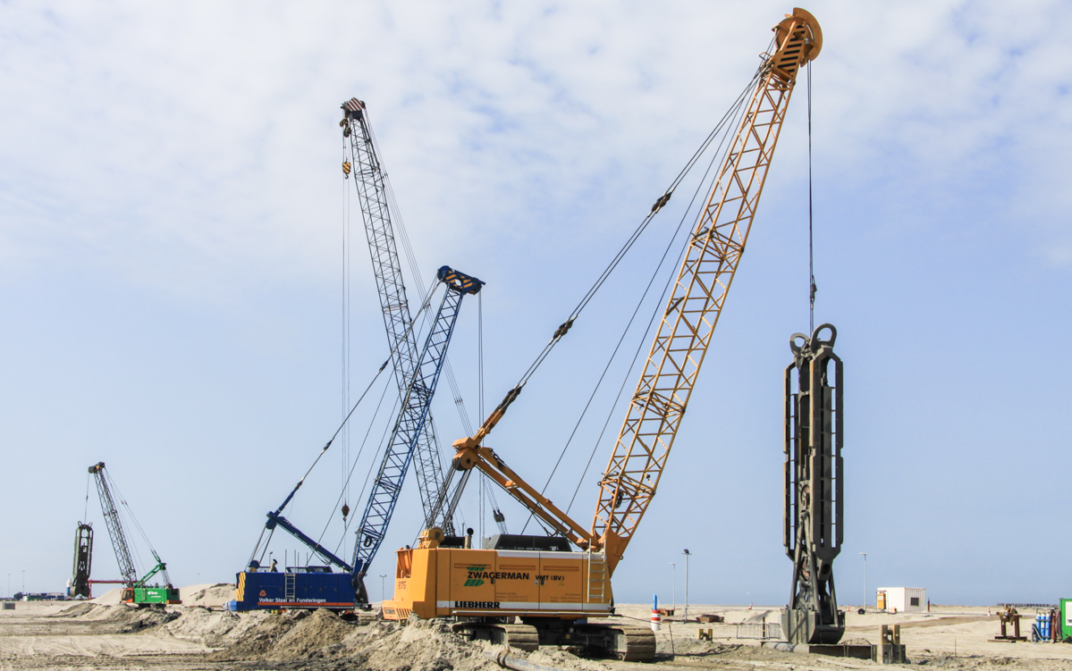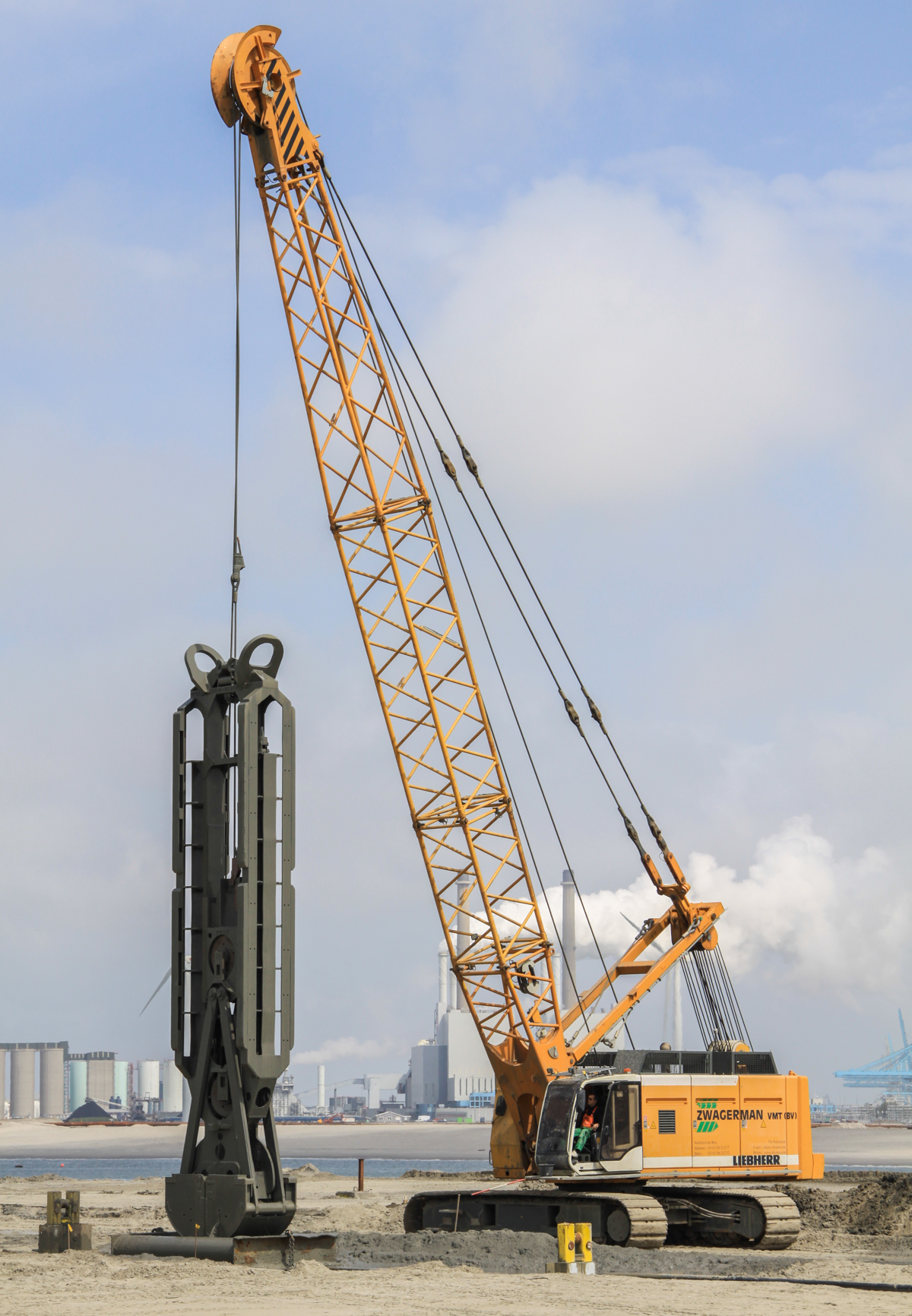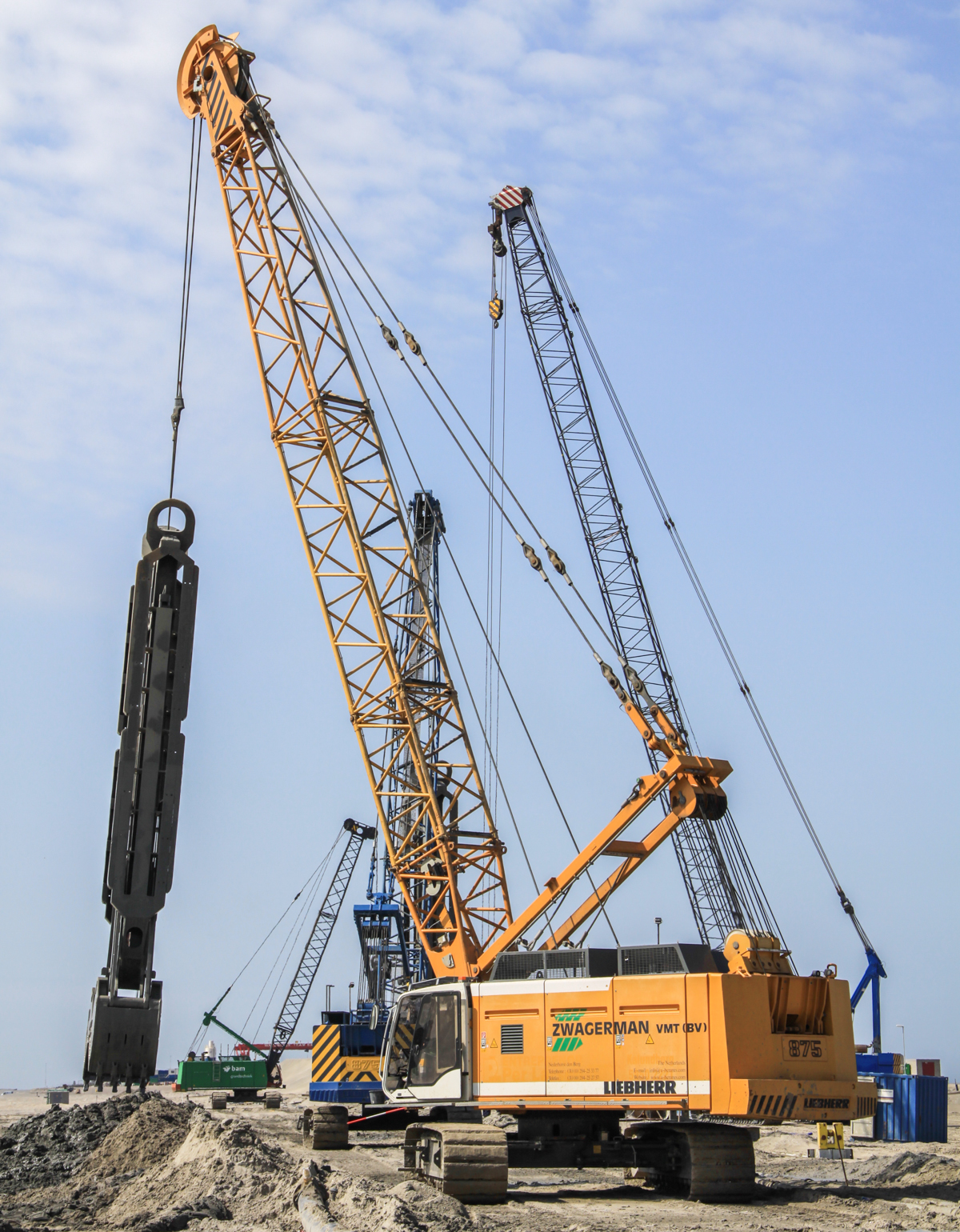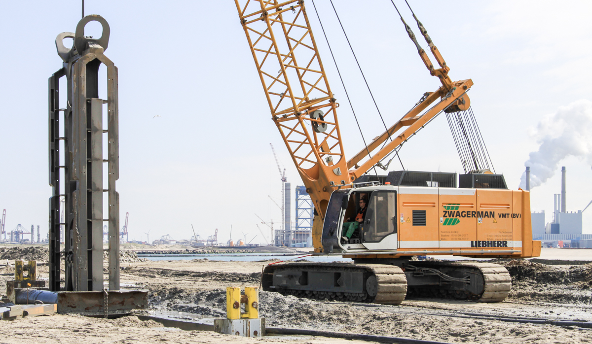 Ein Liebherr HS 875 HD von Zwagerman VMT auf einem Schlitzwand-Einsatz auf der Tweede Maasvlakte (NL).