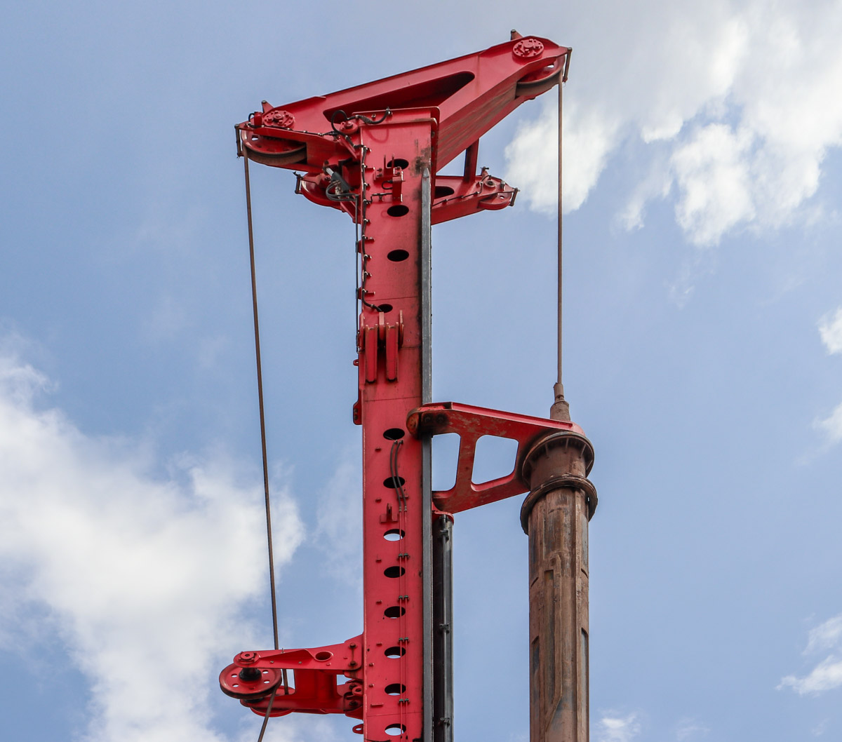 Um das Kellyrohr und das Werkzeug vertikal zu bewegen, wird eine 33,5-Tonnen-Hubwinde mit 36 mm Hubseil verwendet. Die längste Kellystange ohne Werkzeug wiegt 15,9 Tonnen.