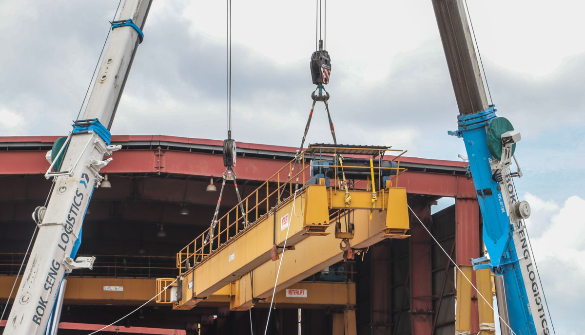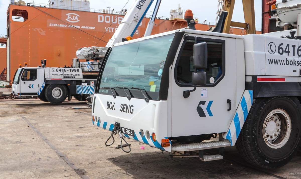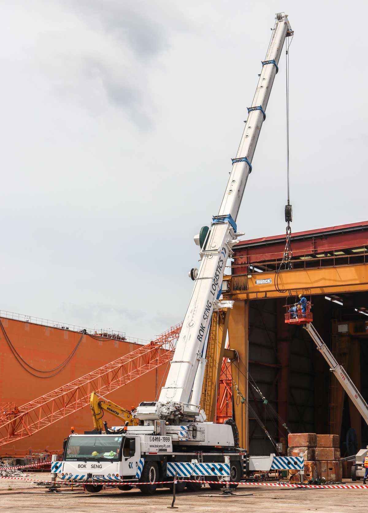 Bok Seng from Singapore (SG) deployed both of its Liebherr LTM 1200-5.1 cranes in identical configuration to dismantle a gantry crane.