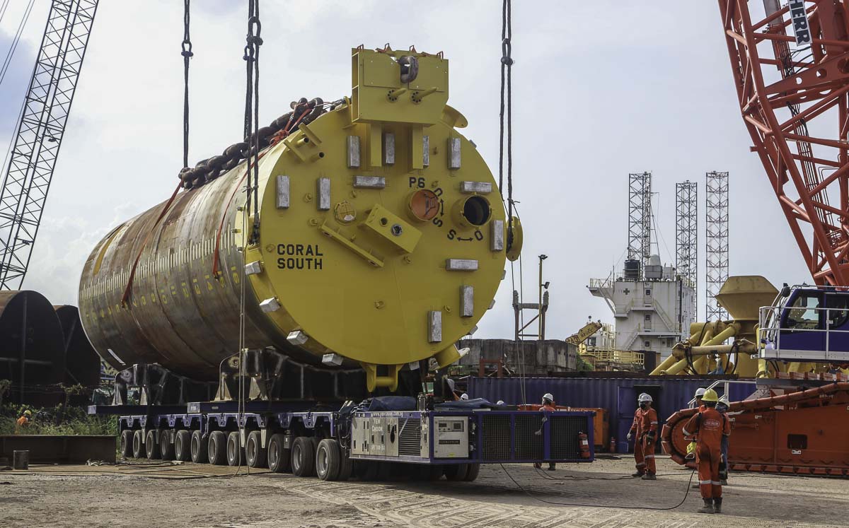 The pile is a 'suction pile' with a mass of approx. 190 tonnes. The pile has a length of approx. 20 meters.