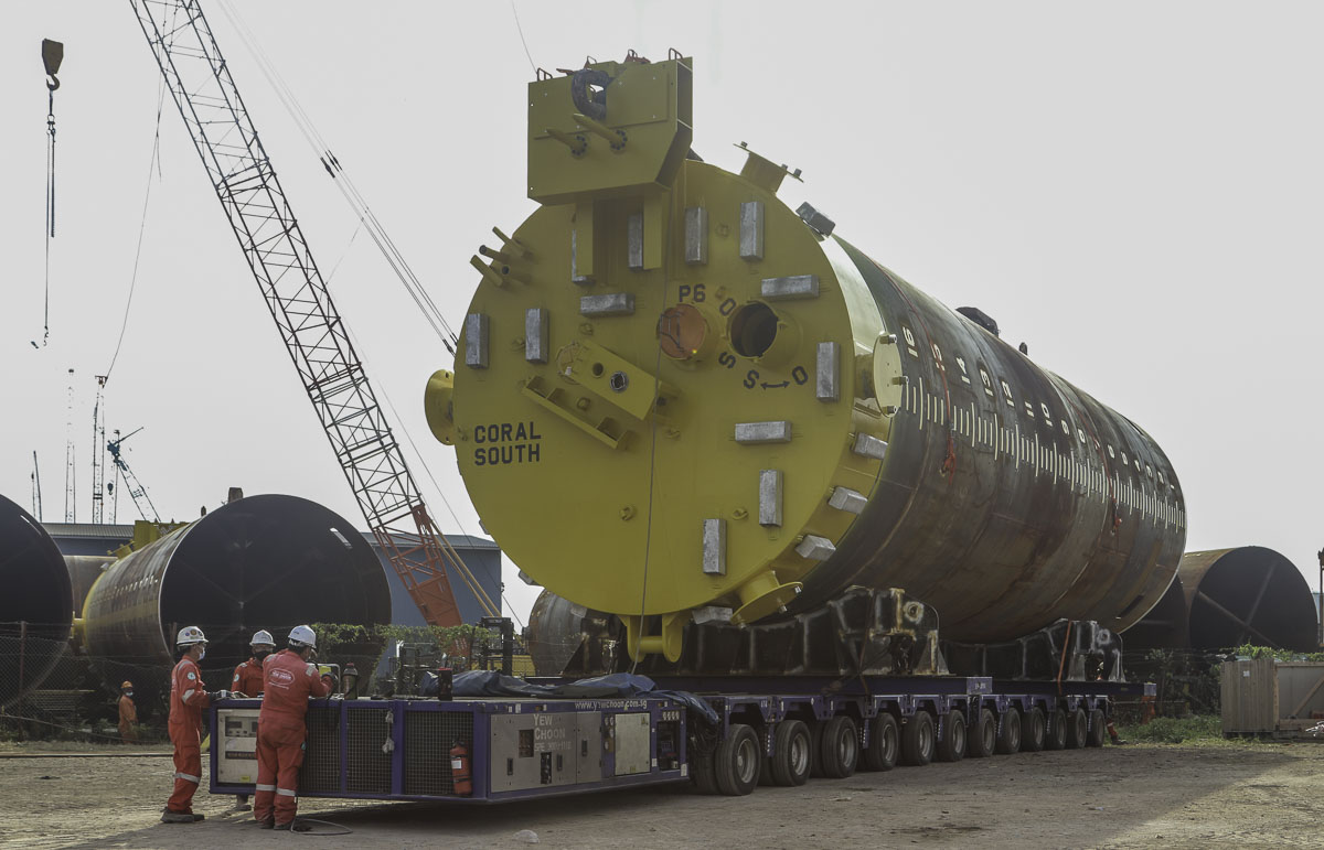 The pile will now be loaded on the 12-axle Scheuerle trailer.